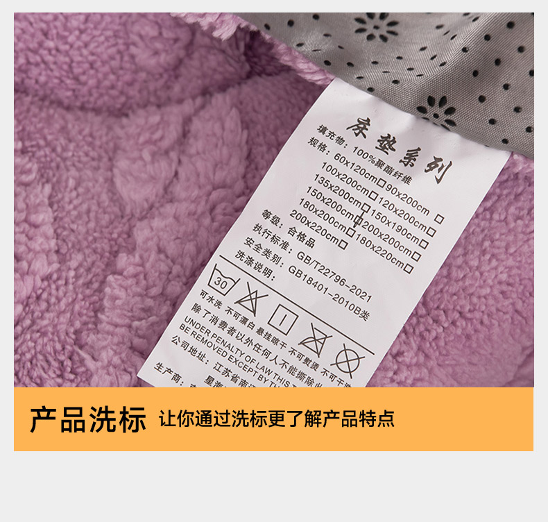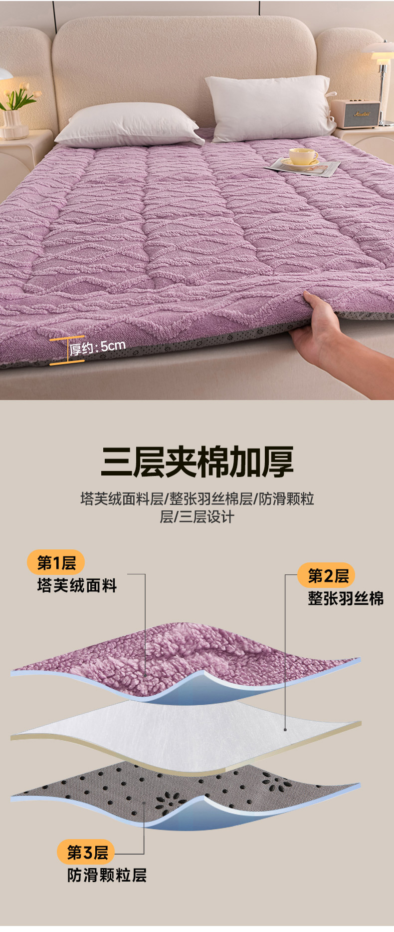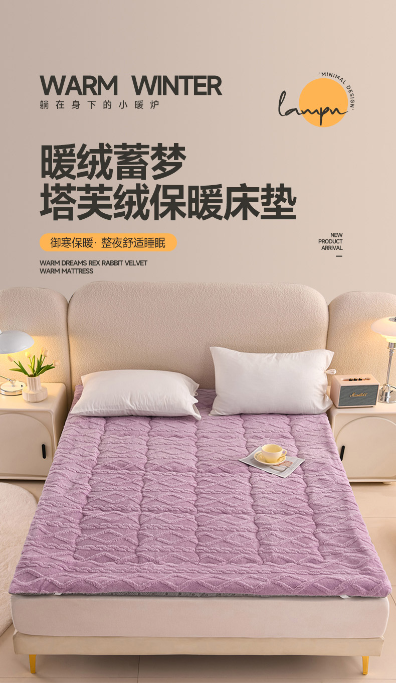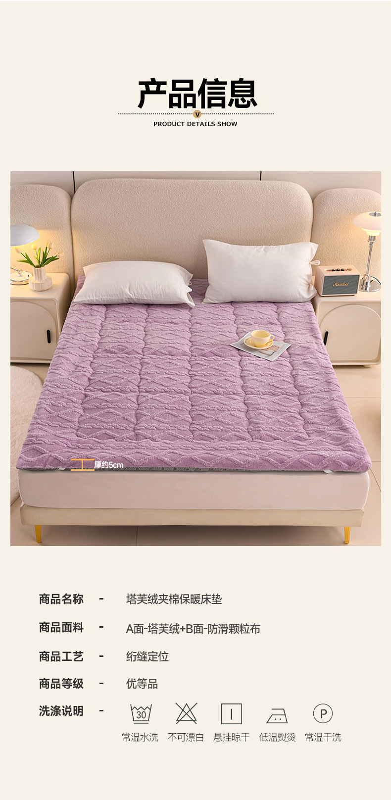 商品名称:艾兜坊 2024新款塔芙绒夹棉保暖床垫 香芋紫