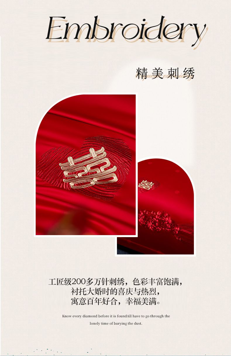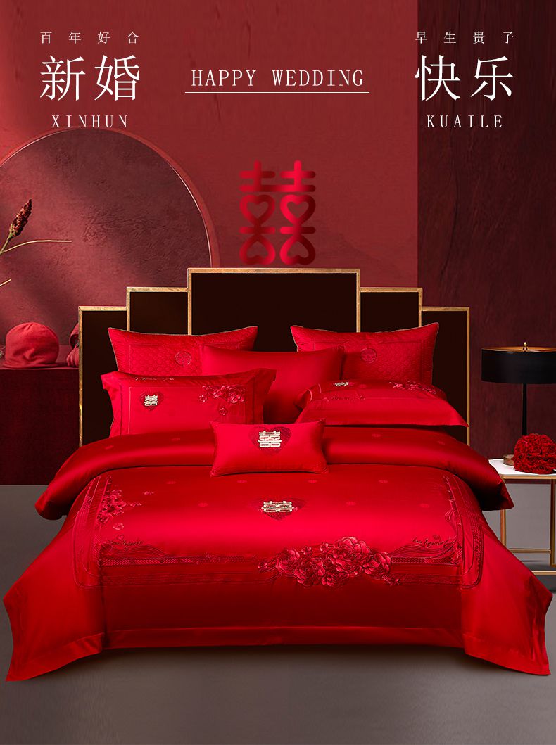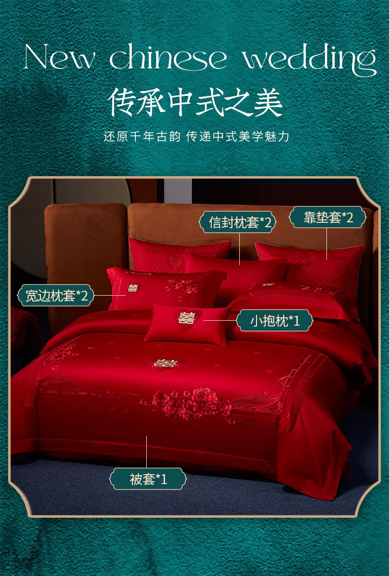当前位置: 91家纺网 > 商品网购 > 床品套件 > 四件套 > 长绒棉四件套 > 高大尚婚庆馆 2025秋冬新款长绒棉臻棉系列婚庆款多件套 花语成喜-红