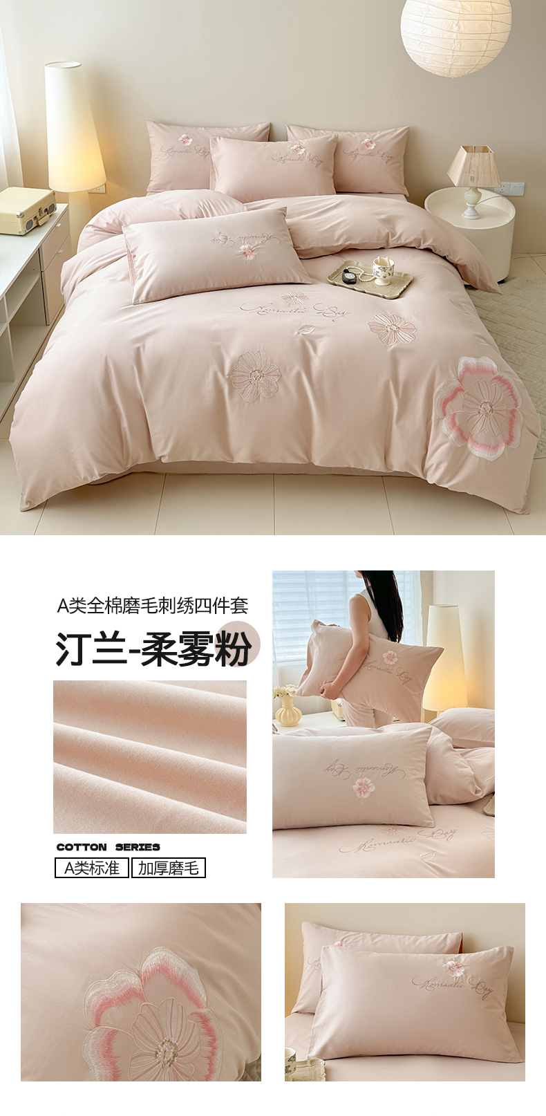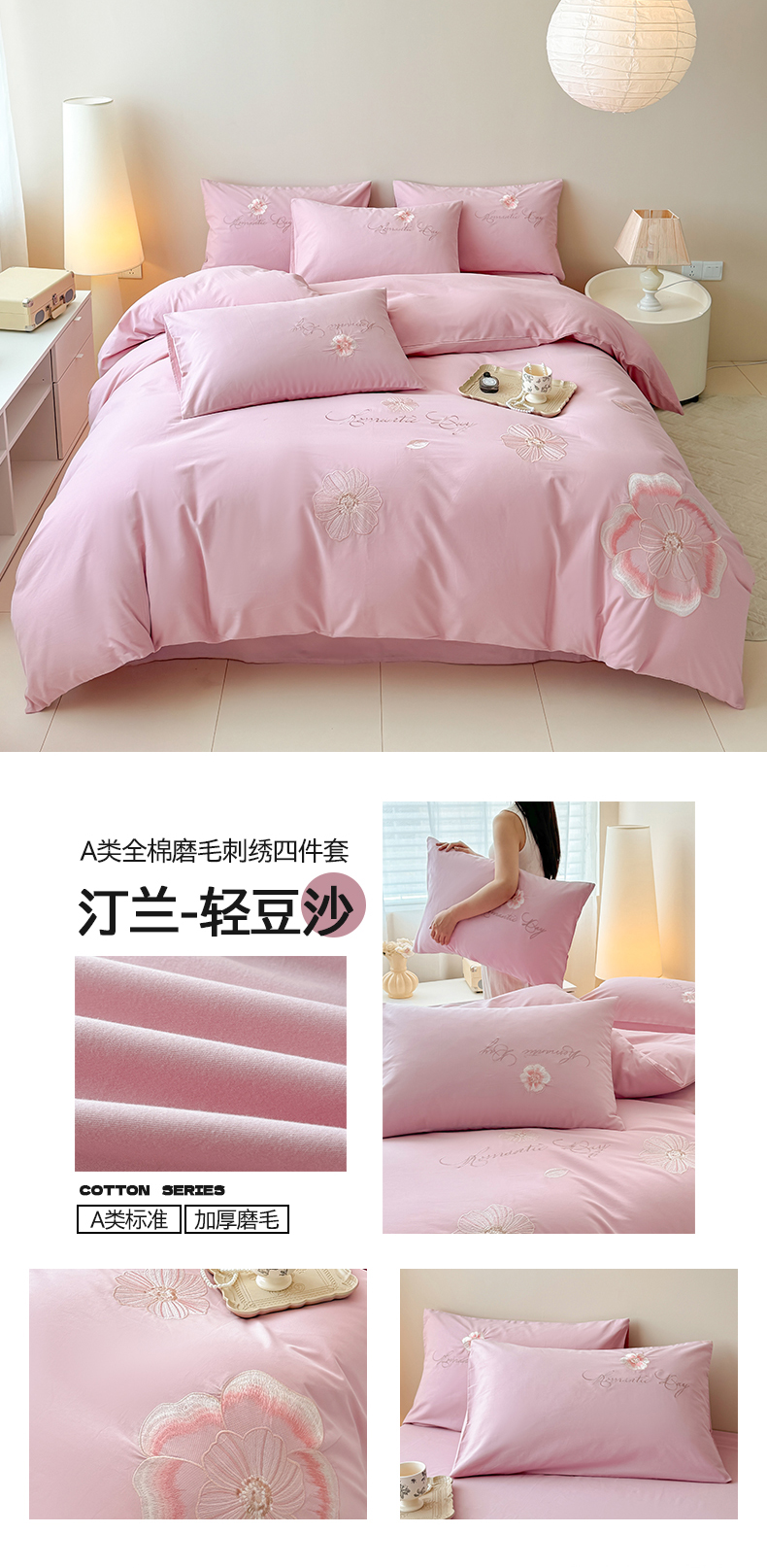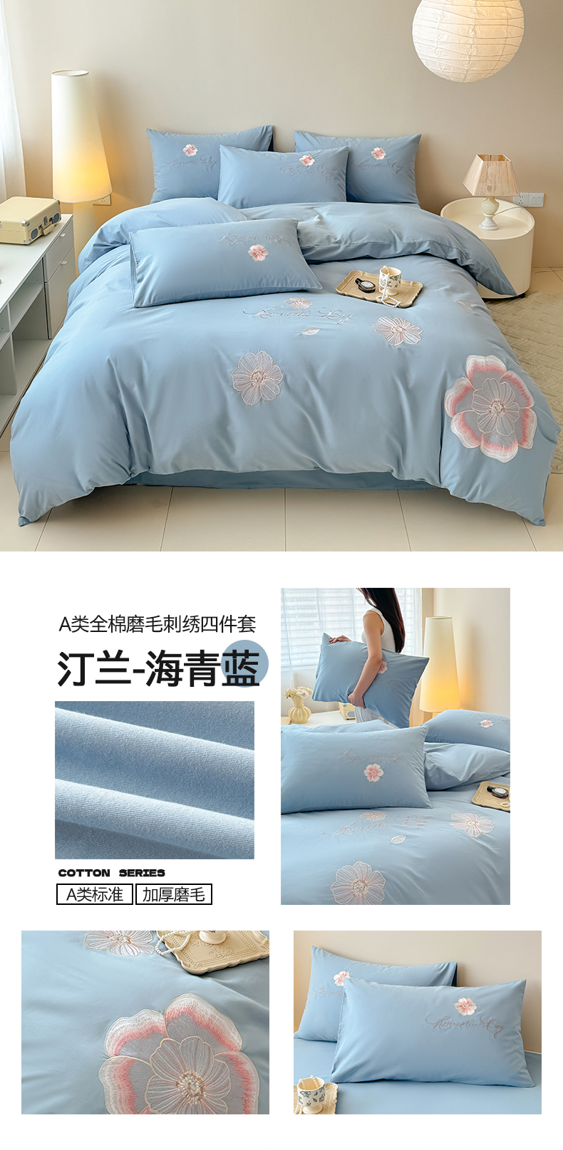 商品名称:(总)典曼家纺 2024新款A类高精密24*21支磨毛绣花四件套-汀兰