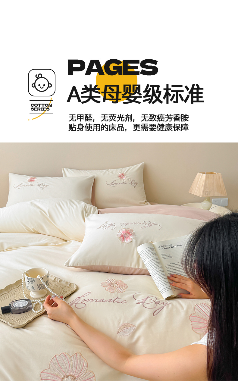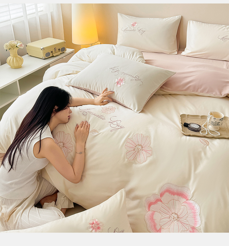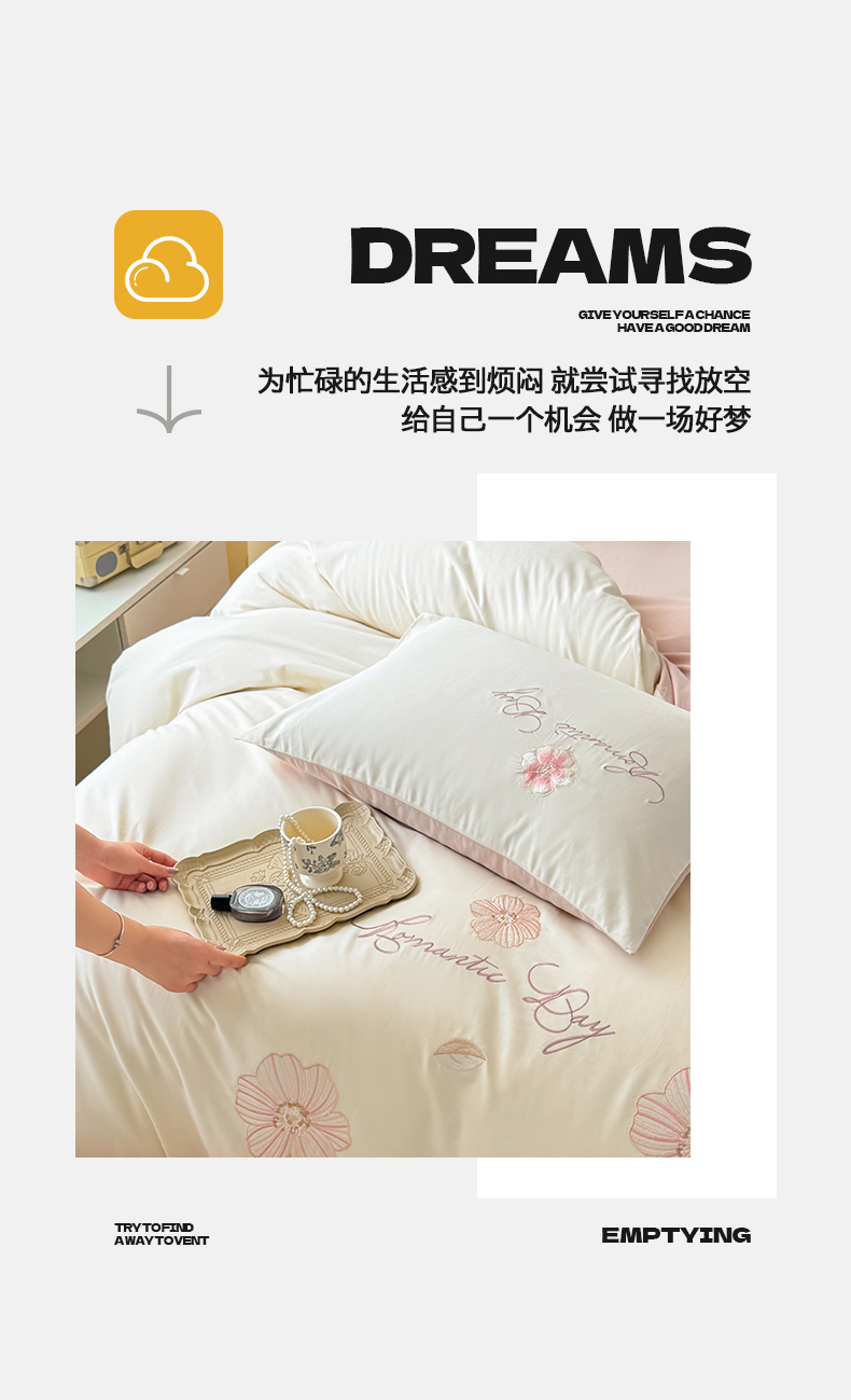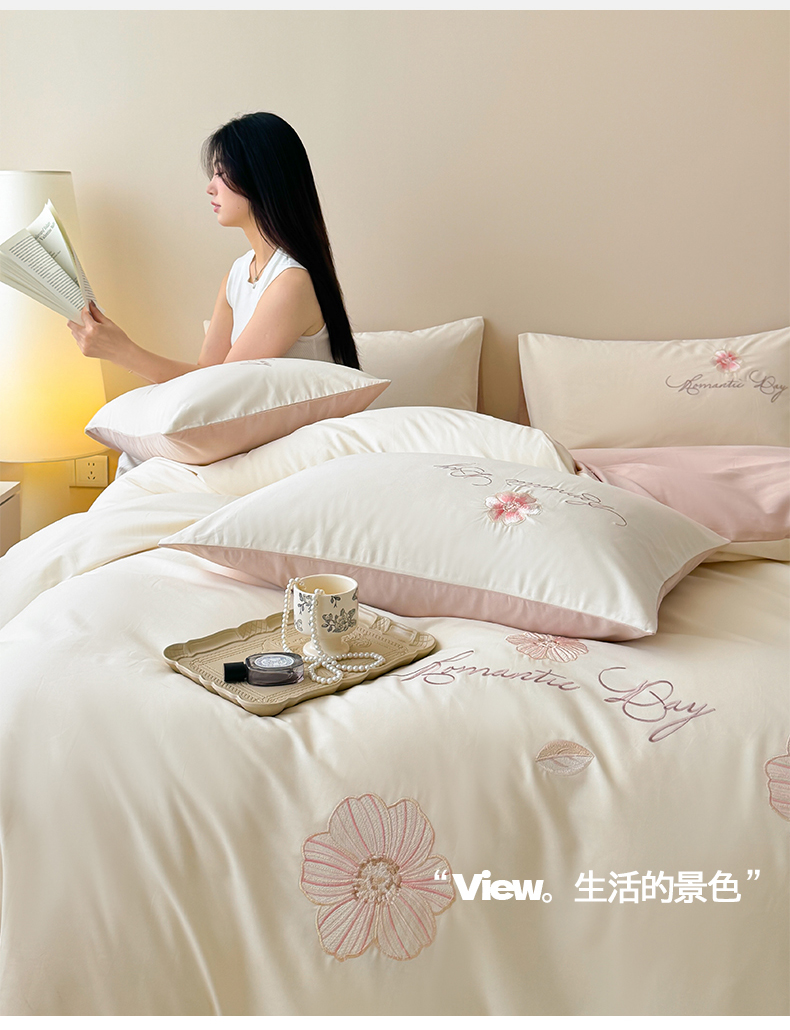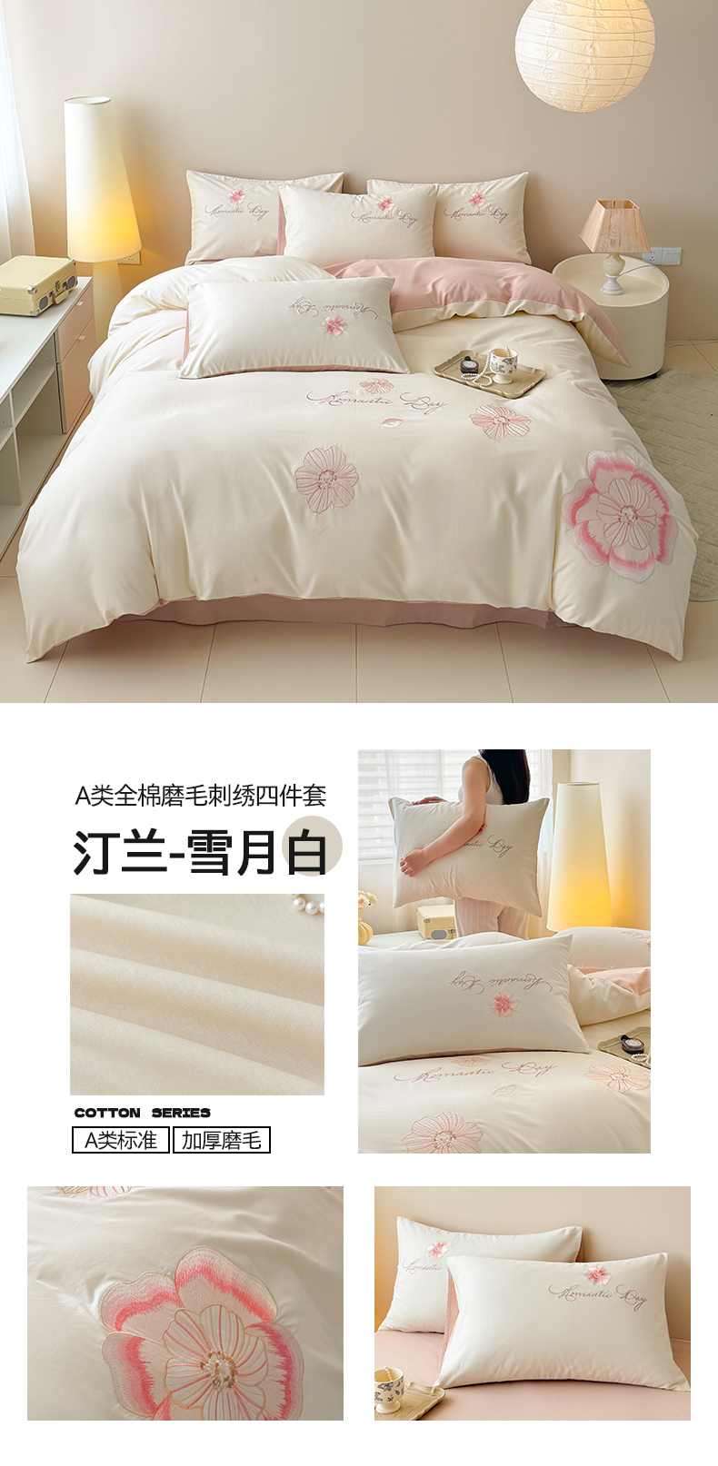 商品名称:(总)典曼家纺 2024新款A类高精密24*21支磨毛绣花四件套-汀兰