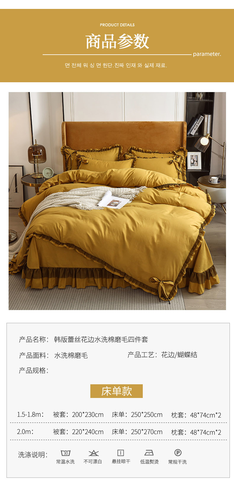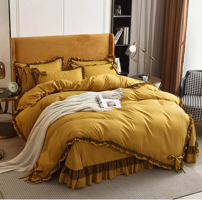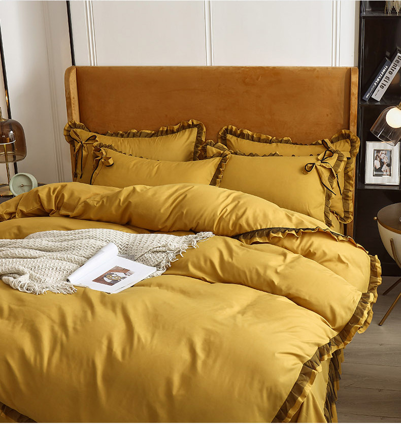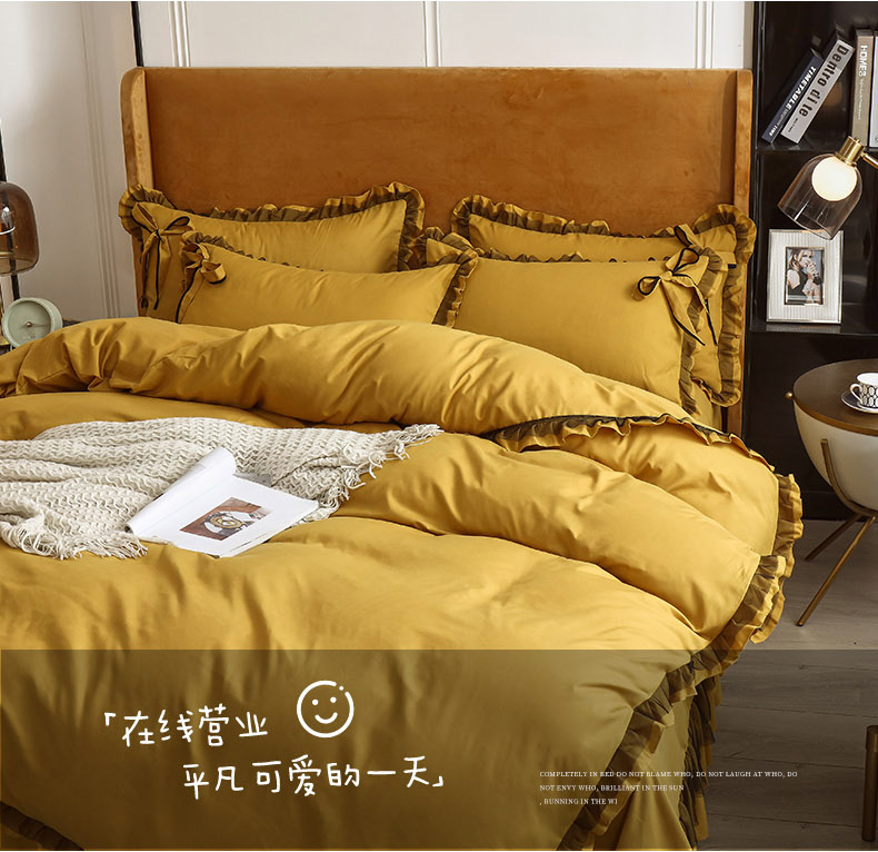 商品名称:兴美佳 2024新款韩版花边磨毛四件套-匆匆那年 匆匆那年柠檬黄