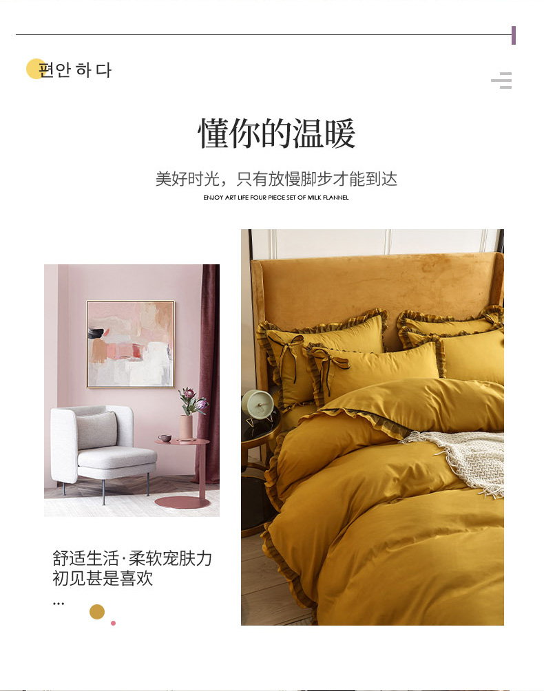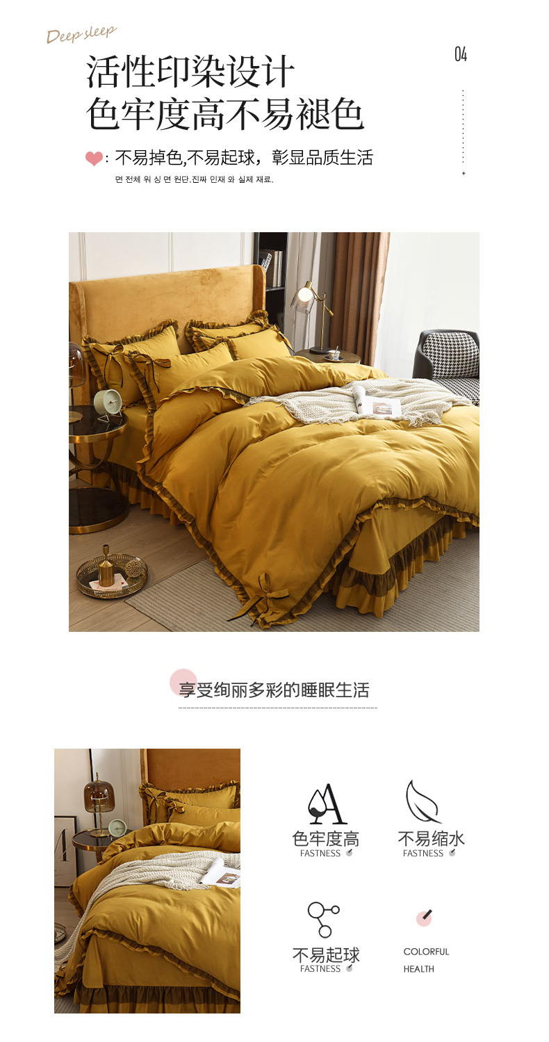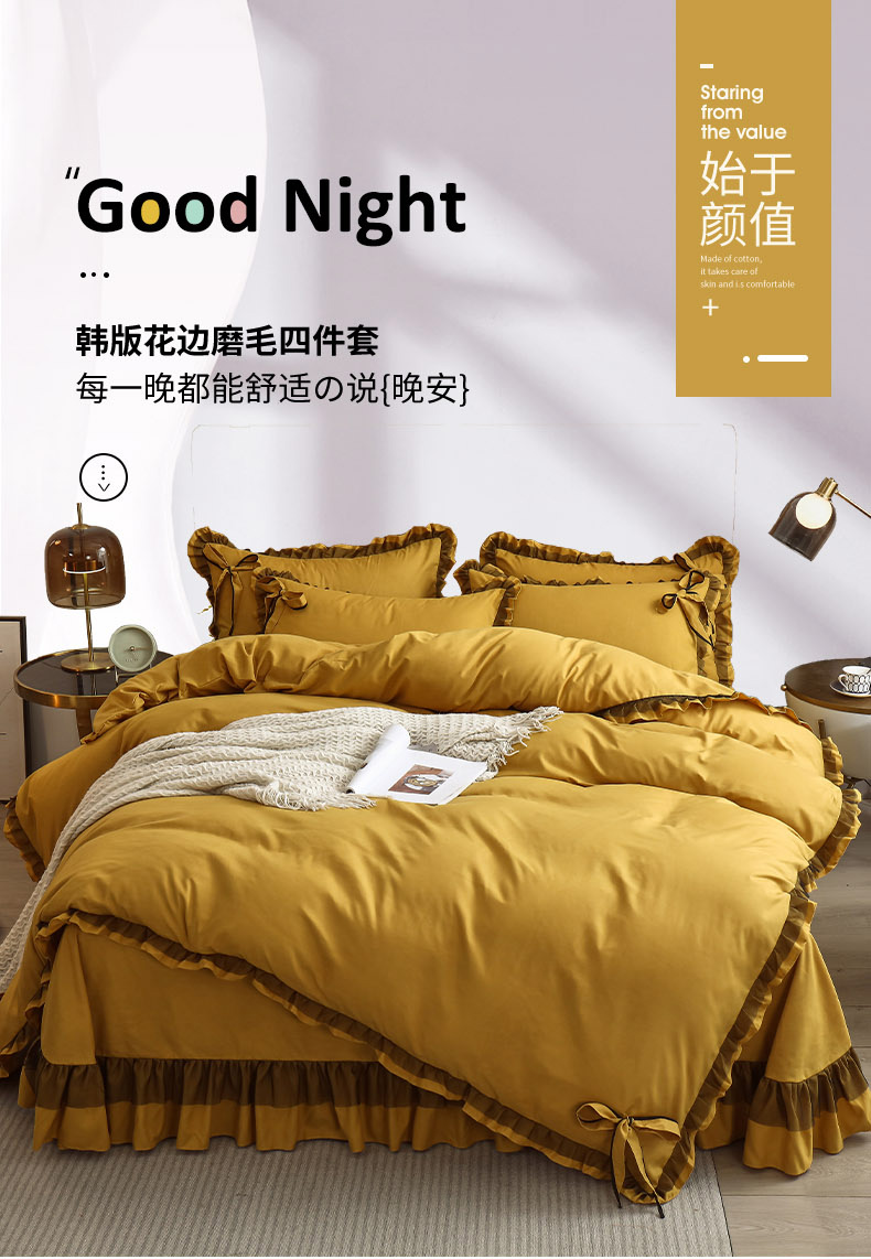 兴美佳 2024新款韩版花边磨毛四件套-匆匆那年 匆匆那年柠檬黄