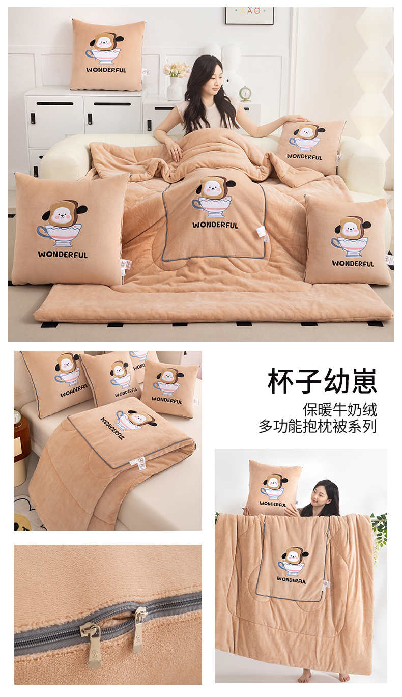 2024新款牛奶绒动物乐园抱枕被 杯子幼崽