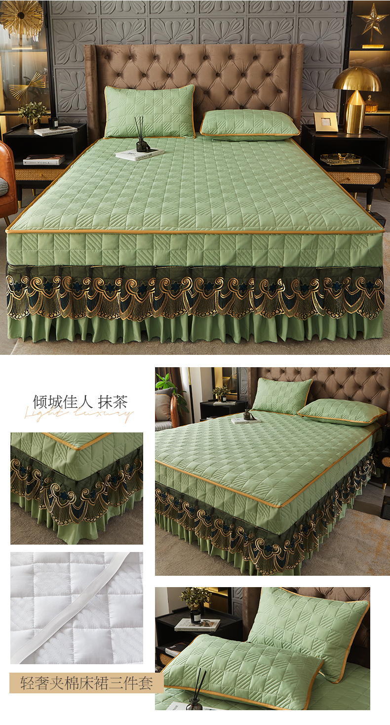 锦逸家居 2024新款加厚磨毛轻奢夹棉床裙床笠三件套系列 佳人-抹茶绿