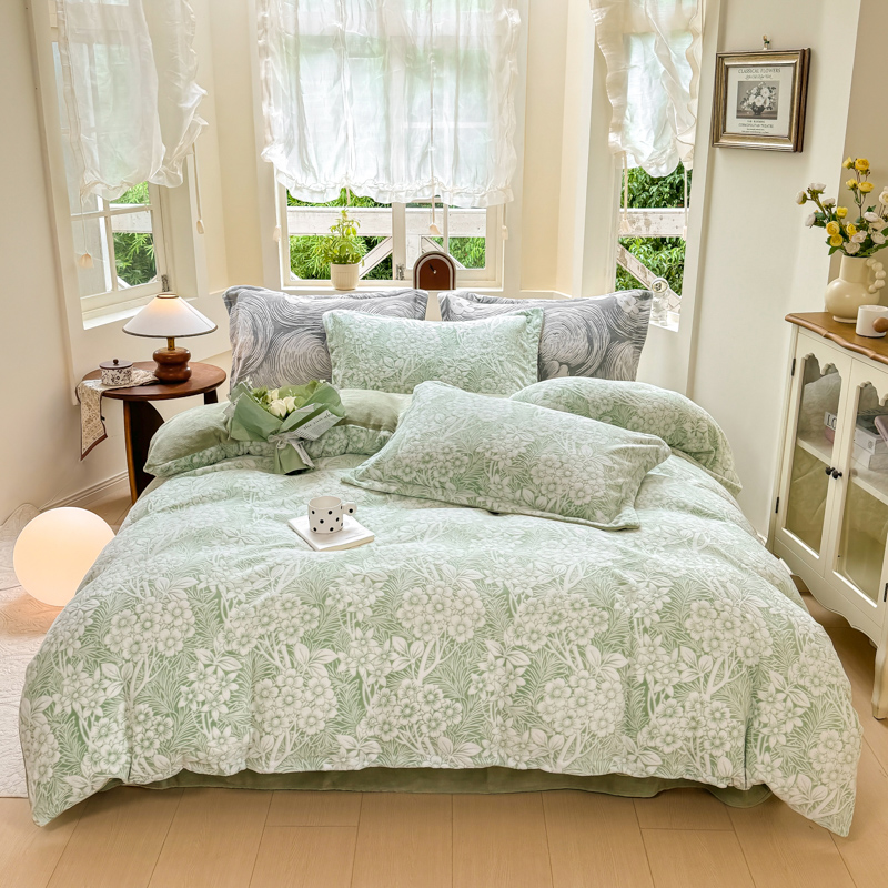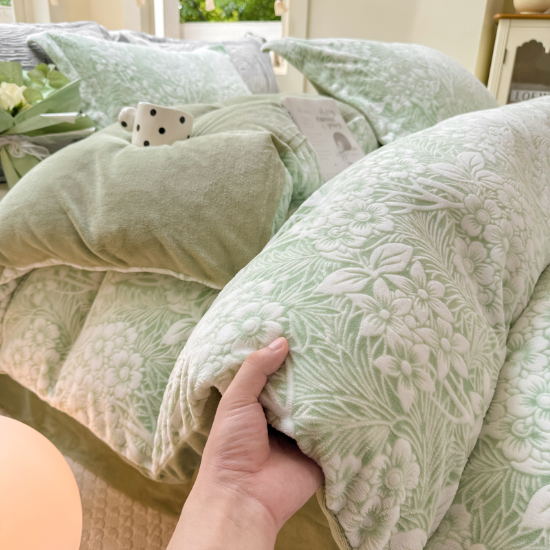 梦莱斯 2024新款雕花牛奶绒四件套 繁花-浅绿