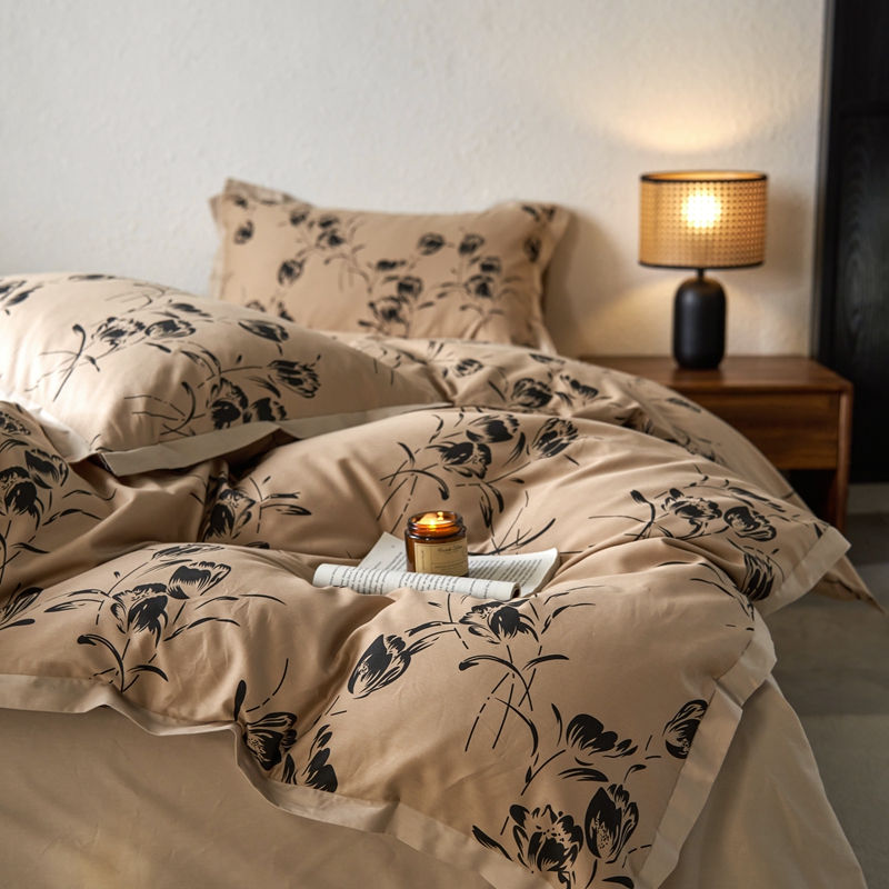 商品名称:时年家纺 2024新款全棉印花飞边款四件套(充值会员享优惠) 与墨