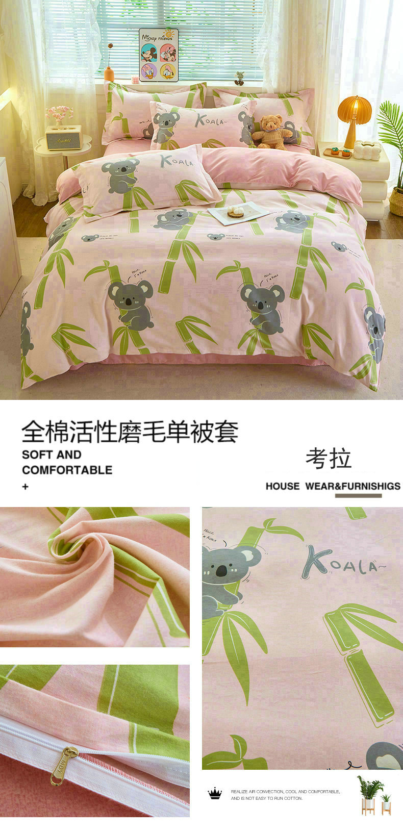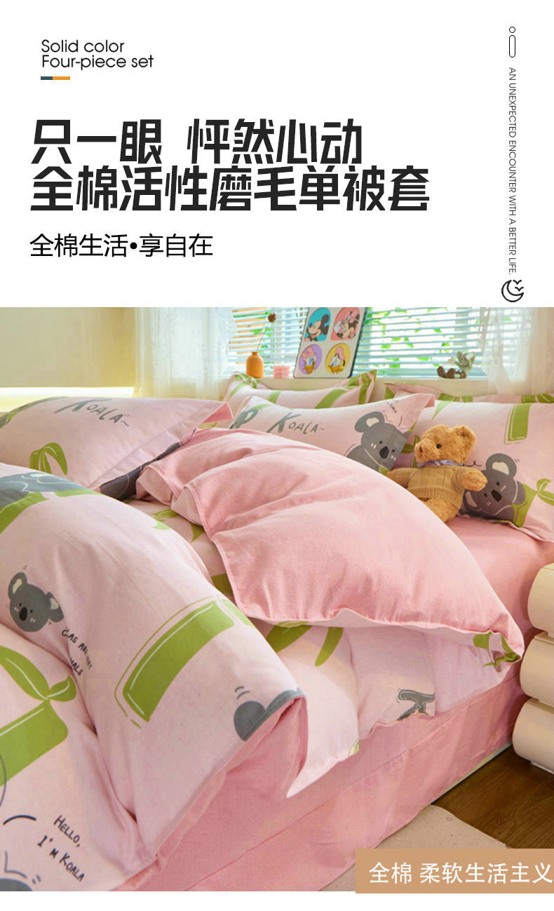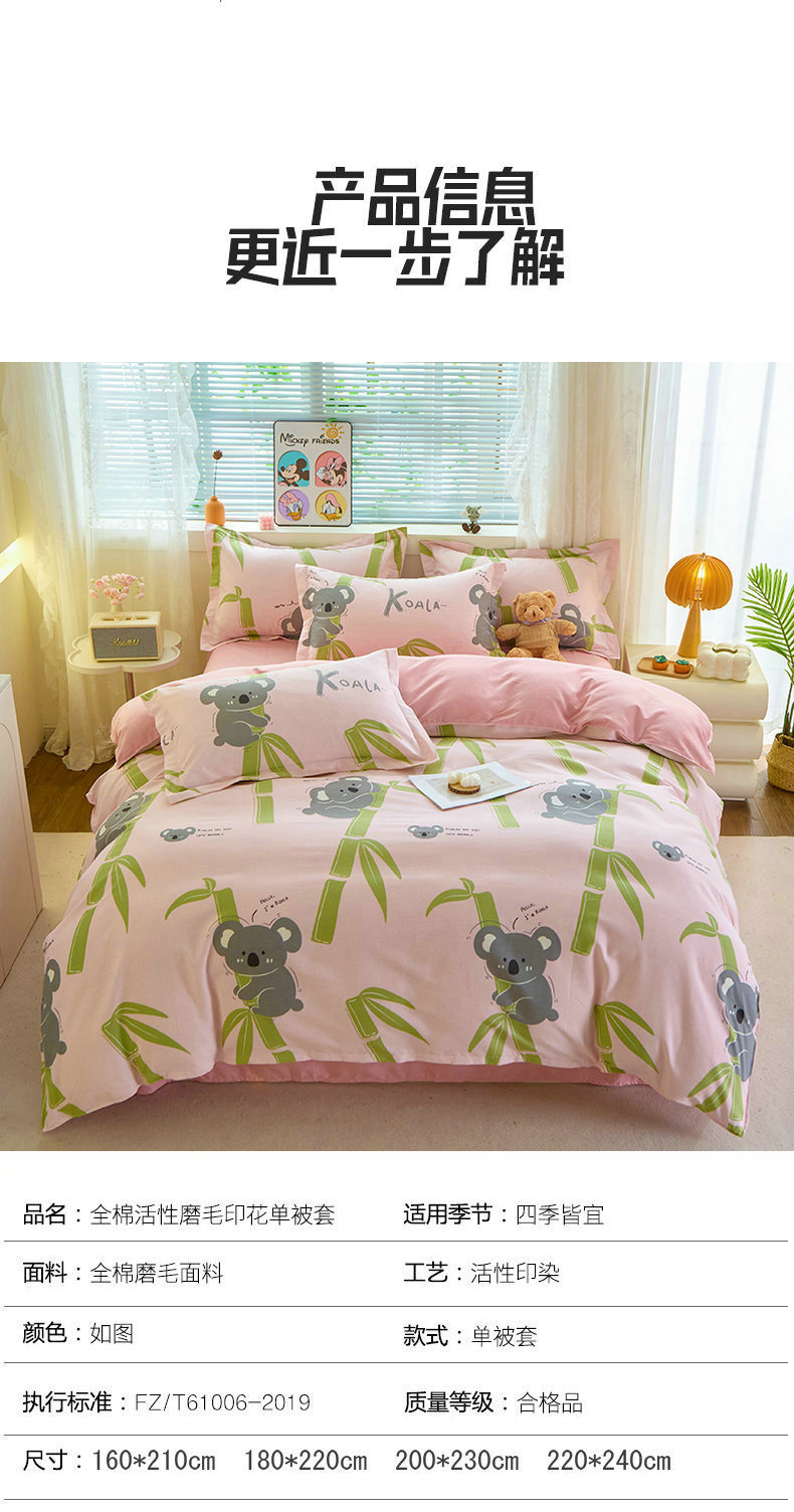 商品名称:牧笛缘家纺 2024新款全棉磨毛单被套 考拉