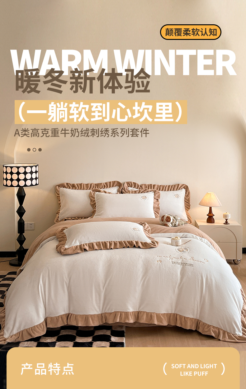 (总)露梦 2025新款加厚保暖牛奶绒刺绣款四件套-轻羽(风格一),轻羽-奶咖色,轻羽-桃夭粉,轻羽-秋波蓝,轻羽-贝壳白,轻羽-银河灰,轻羽-青霜绿,轻羽-风信紫,轻羽-高极灰