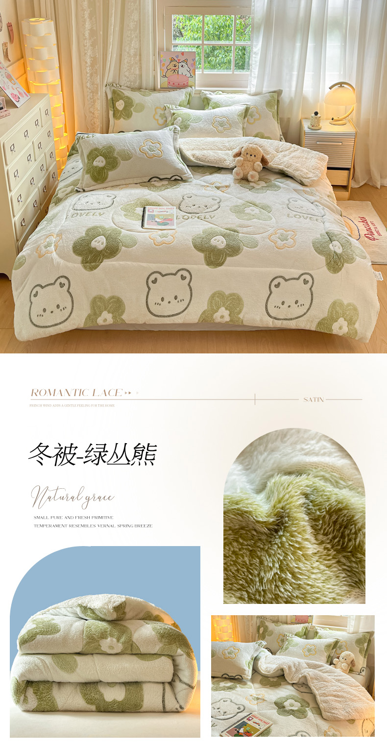 商品名称:花伞家居 2024新款加厚雪花绒羊羔绒秋冬被保暖被芯 冬被-绿丛熊