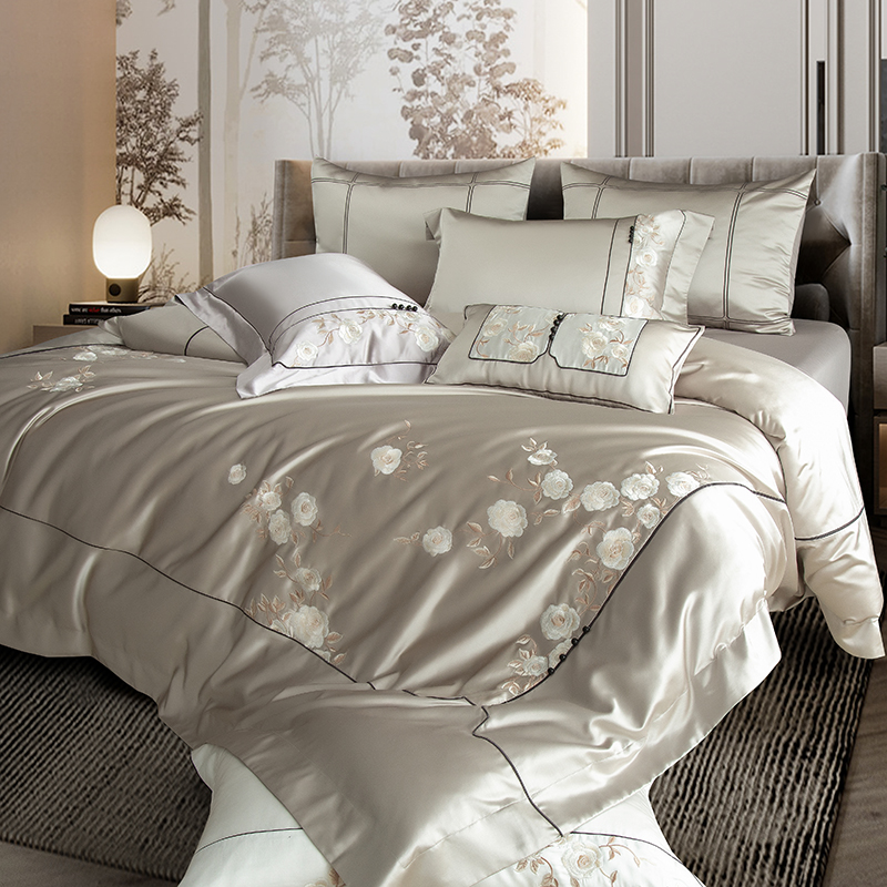 (总)2024新款亲肤舒适时尚轻奢四件套--幸福里-香槟色