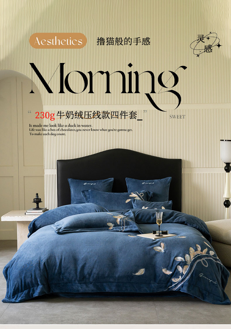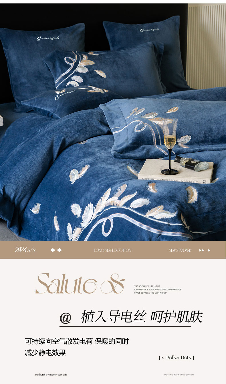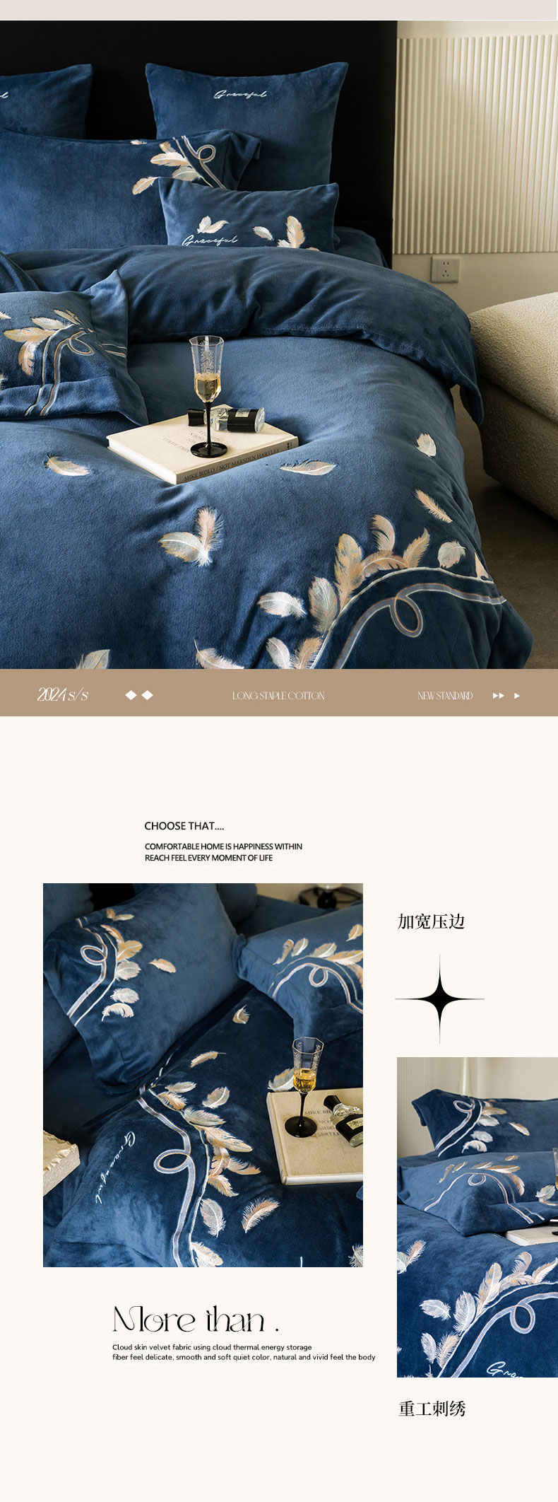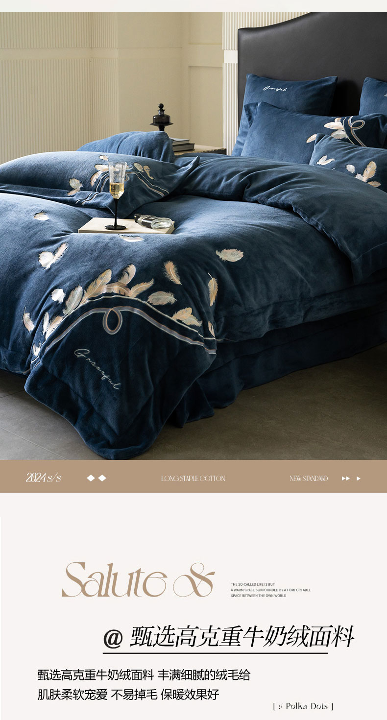 FORTWO家纺 2024新款230G牛奶绒压线款四件套 羽毛藏青