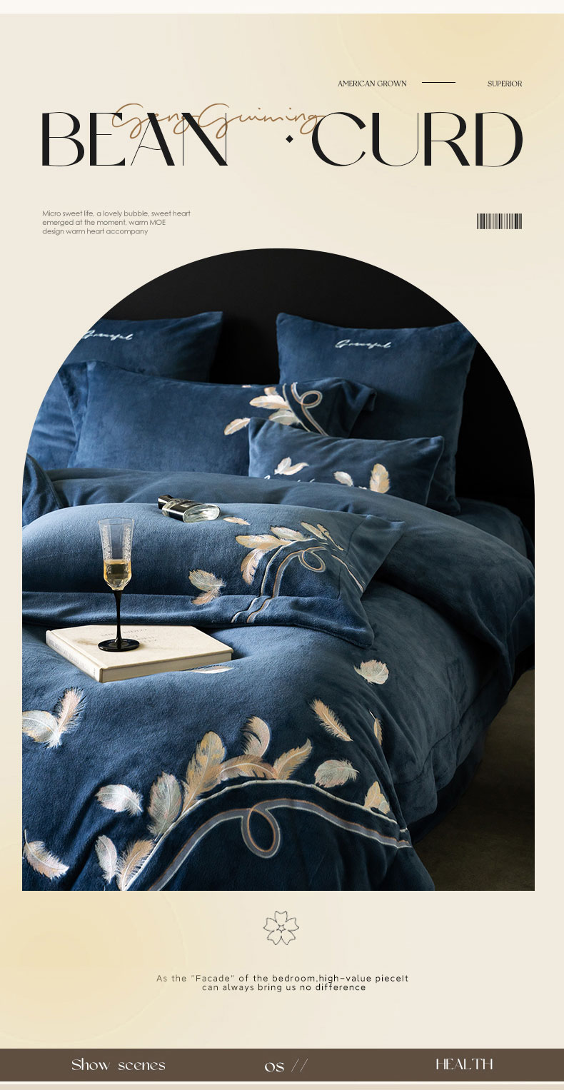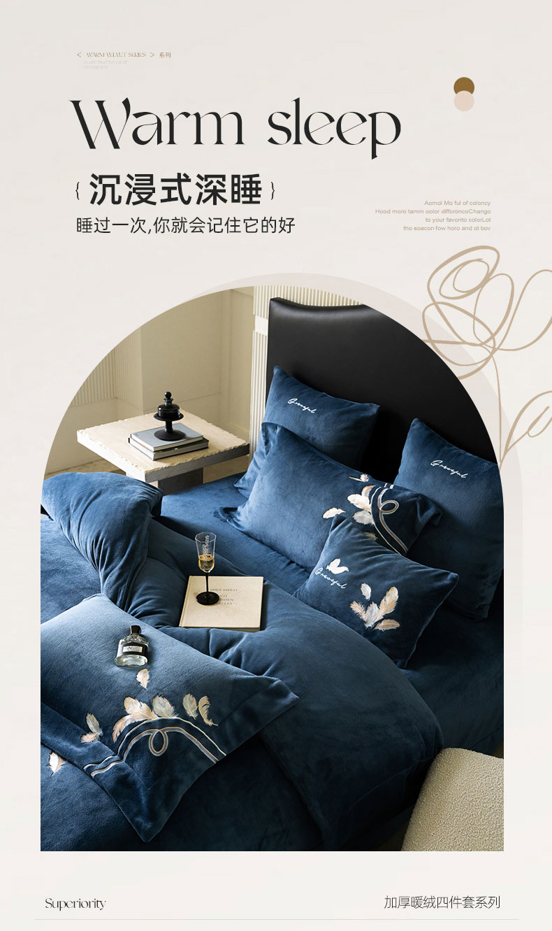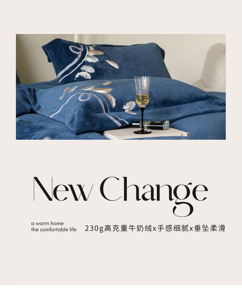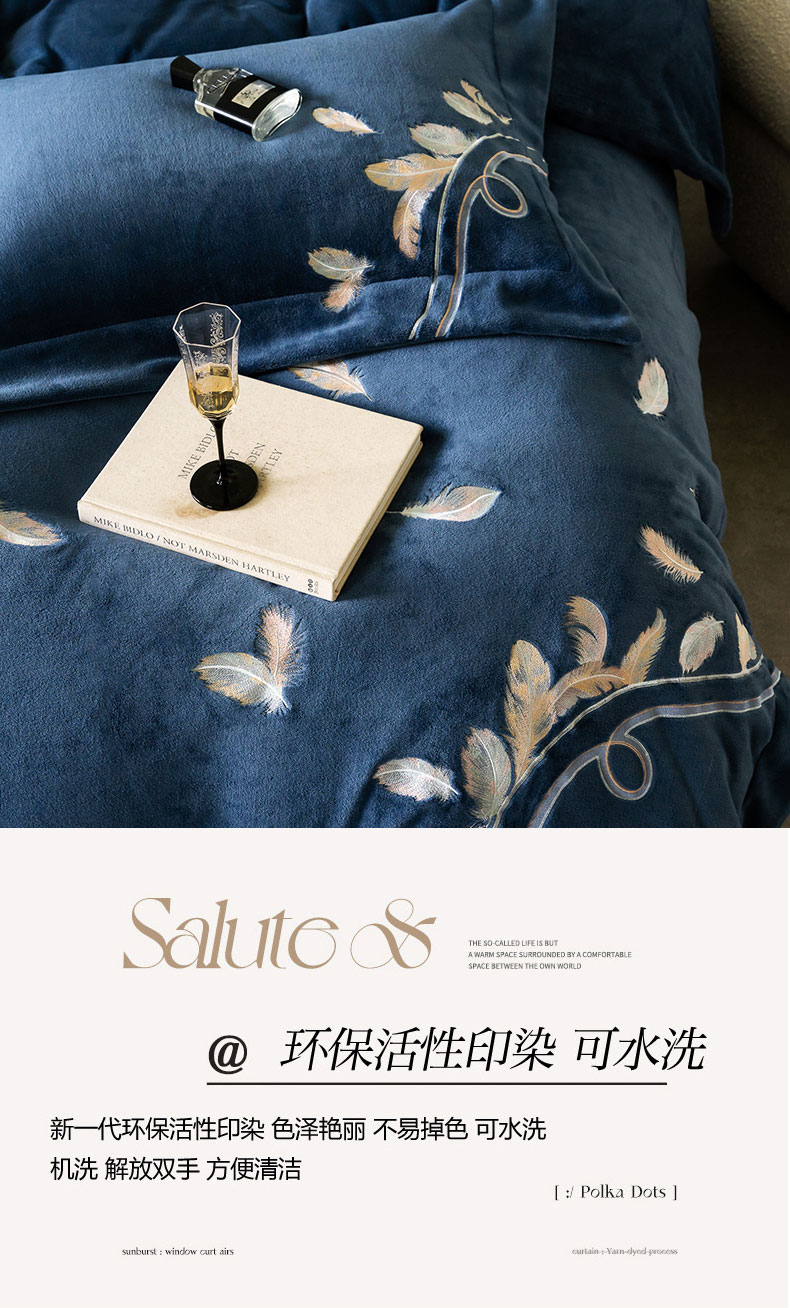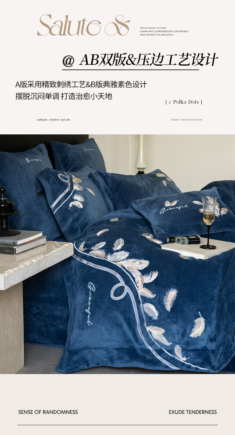 FORTWO家纺 2024新款230G牛奶绒压线款四件套 羽毛藏青