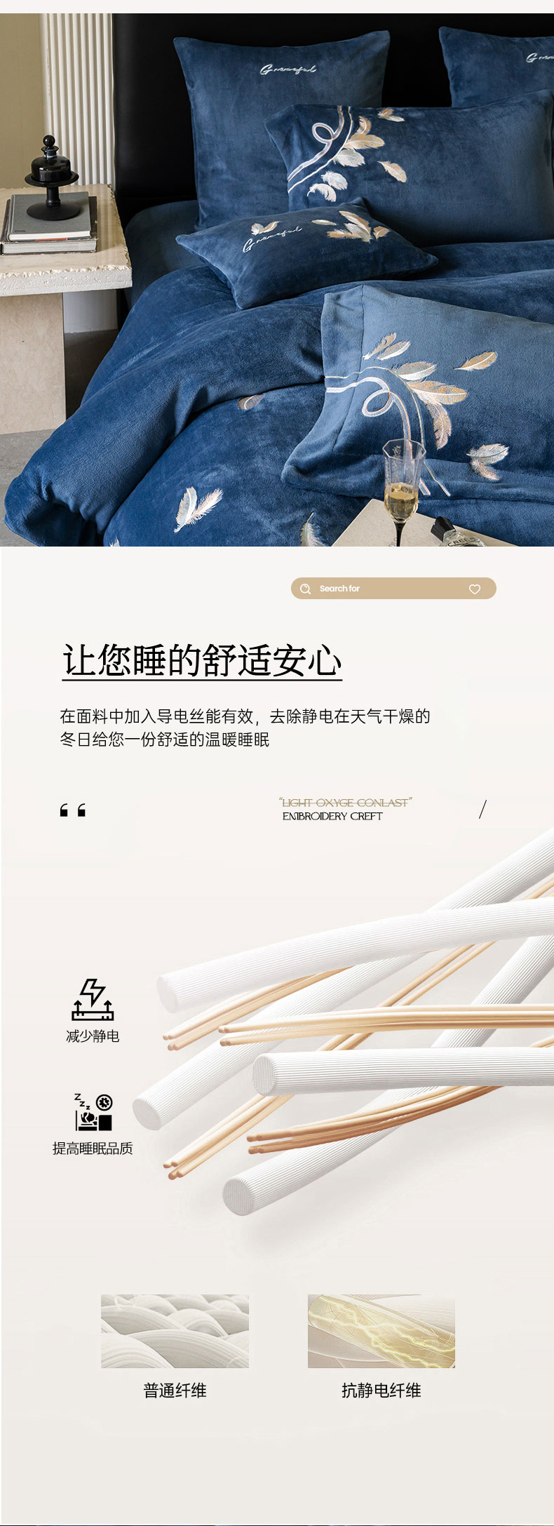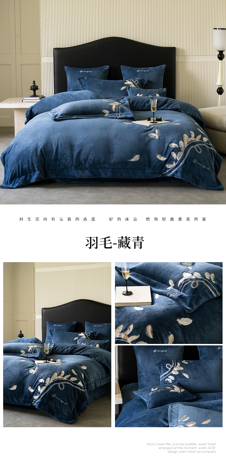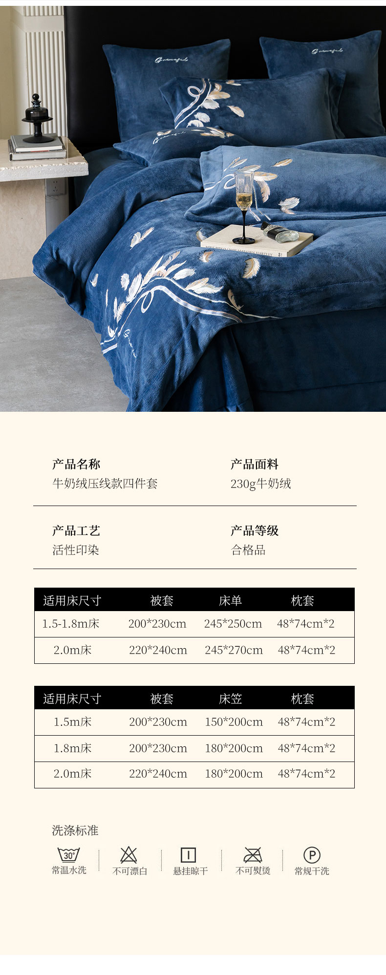 商品名称:FORTWO家纺 2024新款230G牛奶绒压线款四件套 羽毛藏青