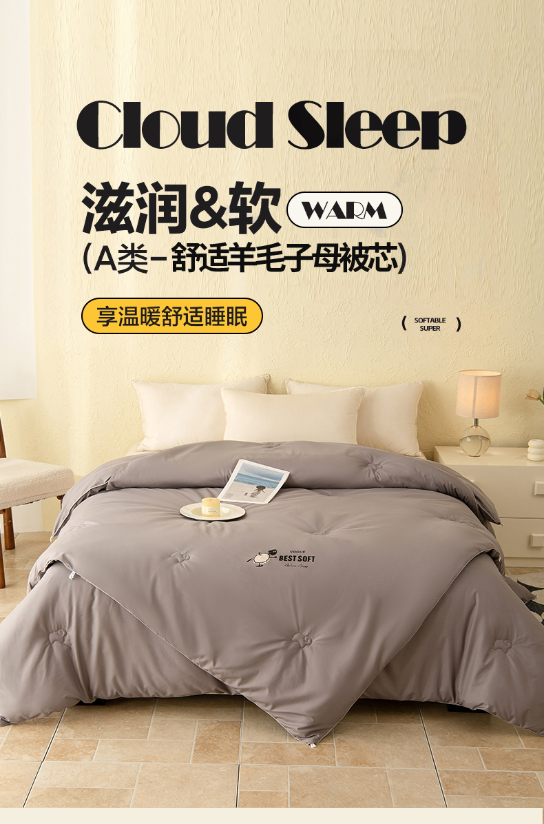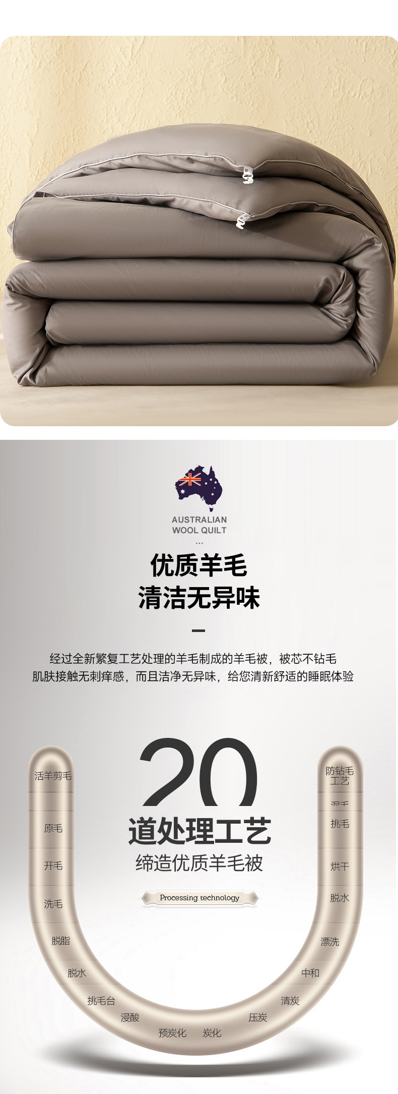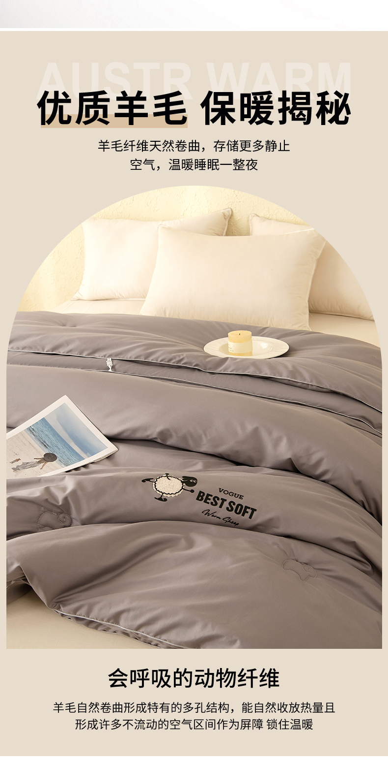 • 91家纺网 家纺一手货源 找家纺 鸣升家纺 新款A类100%羊毛被冬被被子被芯子母被二合一 深空灰