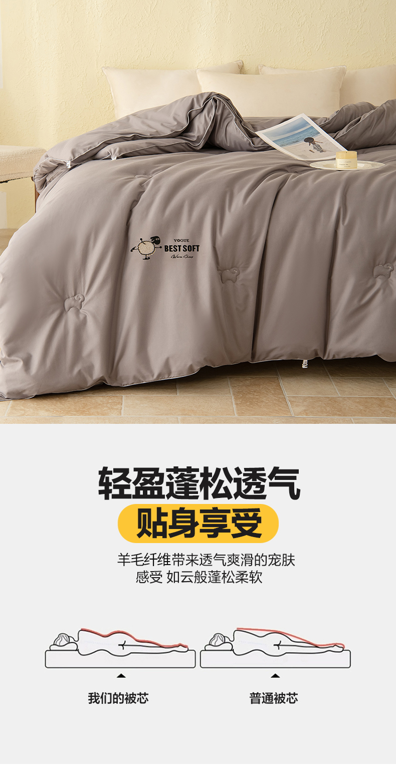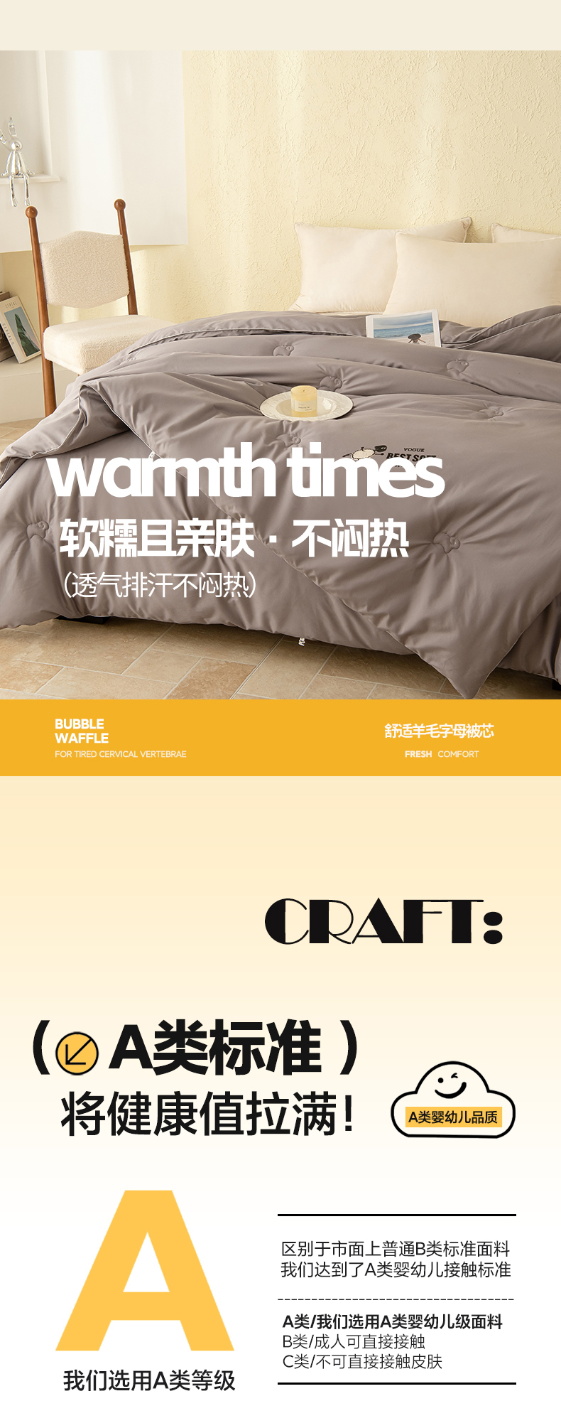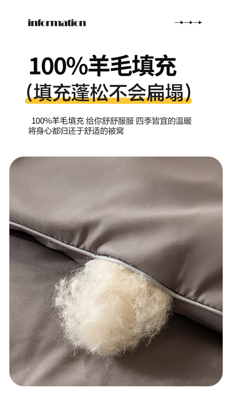 • 91家纺网 家纺一手货源 找家纺 鸣升家纺 新款A类100%羊毛被冬被被子被芯子母被二合一 深空灰