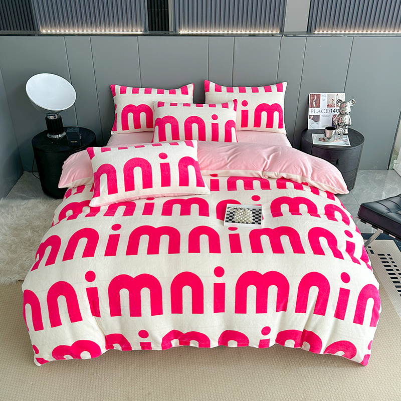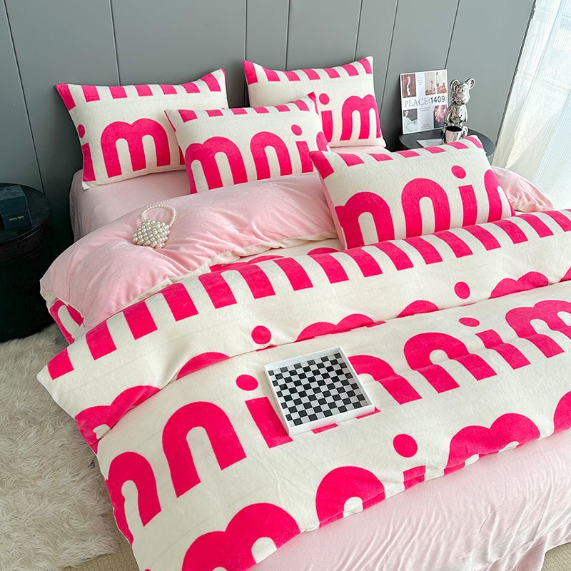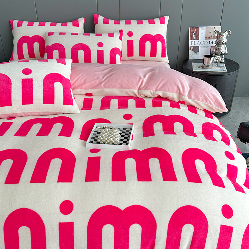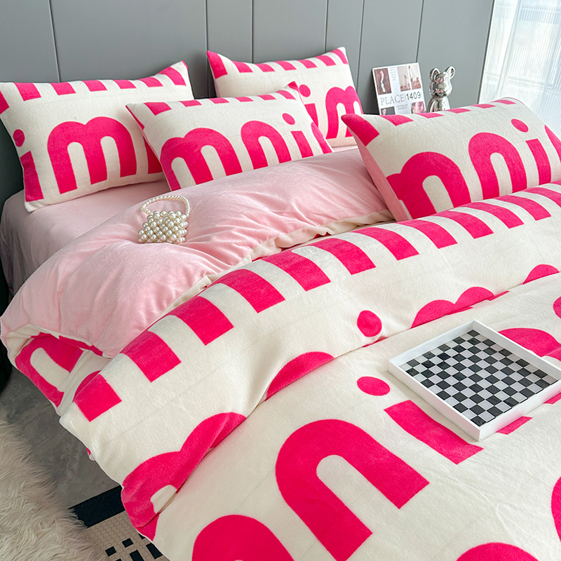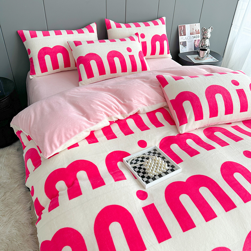 斯卡诺2025新款直播轻奢爆款小清新牛奶宝宝绒四件套 迷你粉