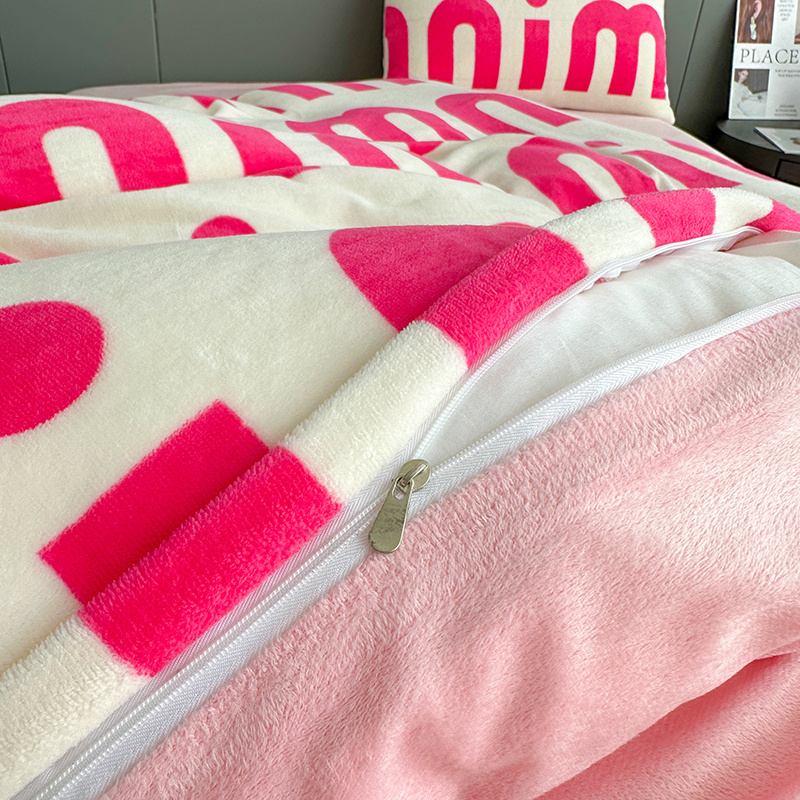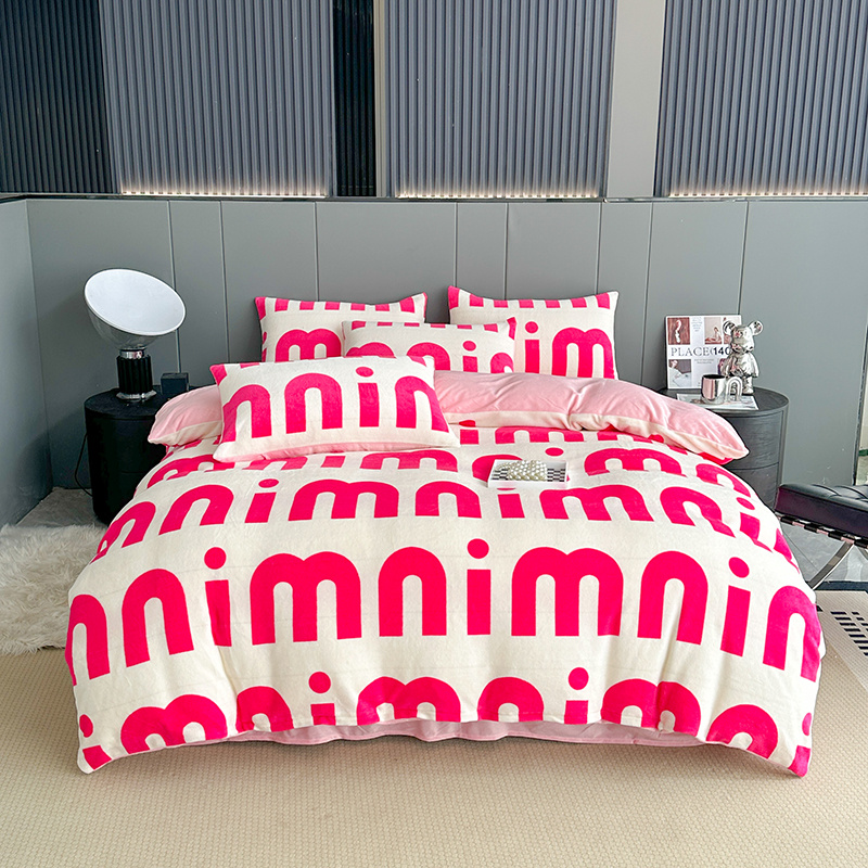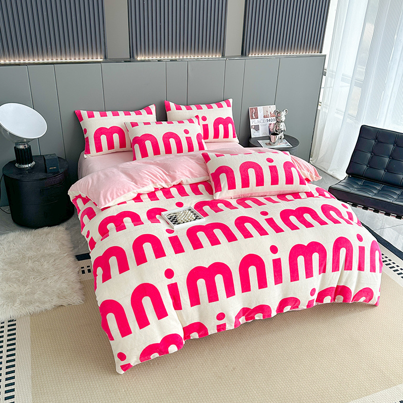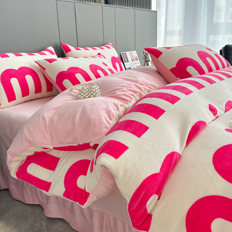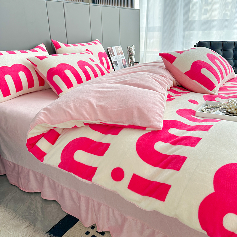 斯卡诺2025新款直播轻奢爆款小清新牛奶宝宝绒四件套 迷你粉