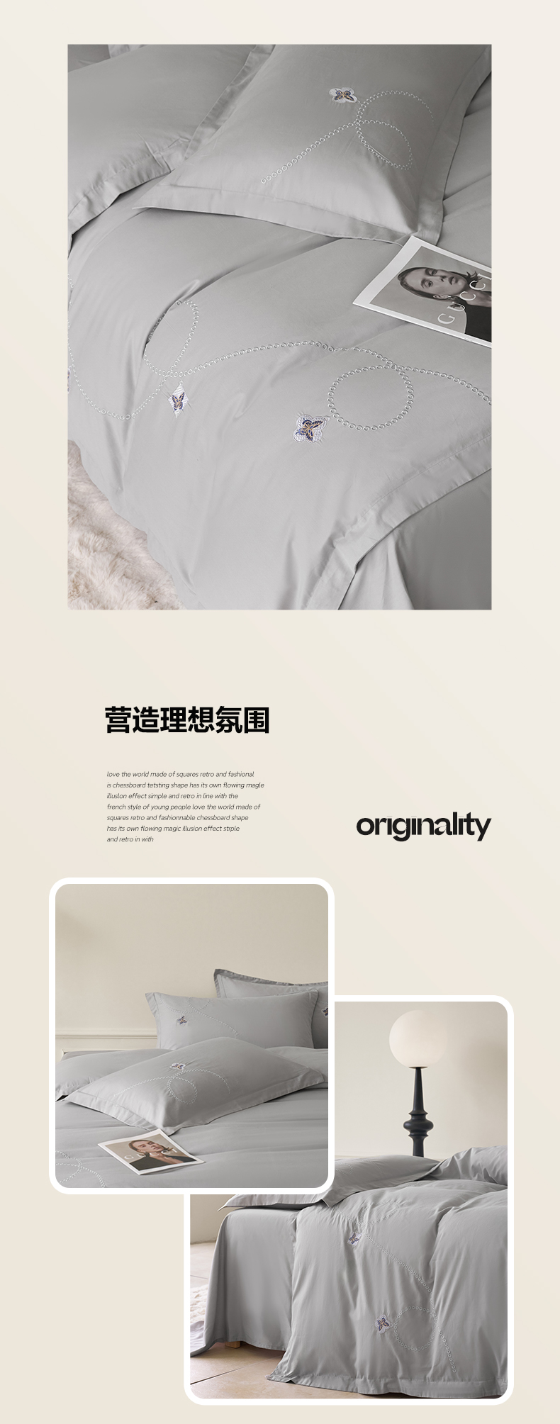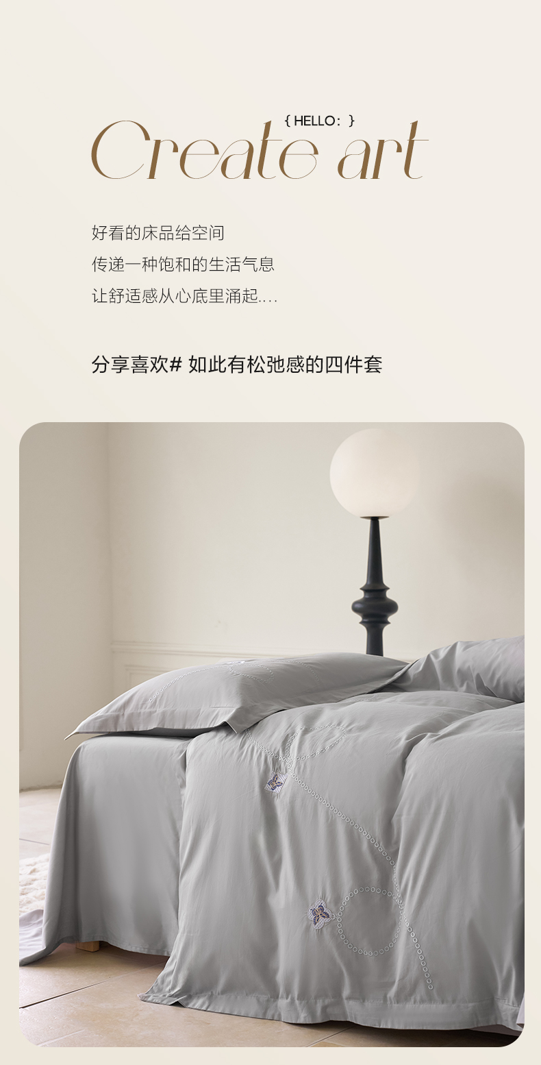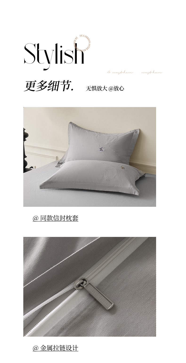 米奈家居 2024新款长绒棉纯棉刺绣四件套-罗琳-简约风 冰川灰