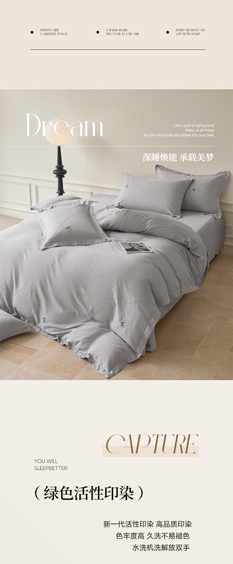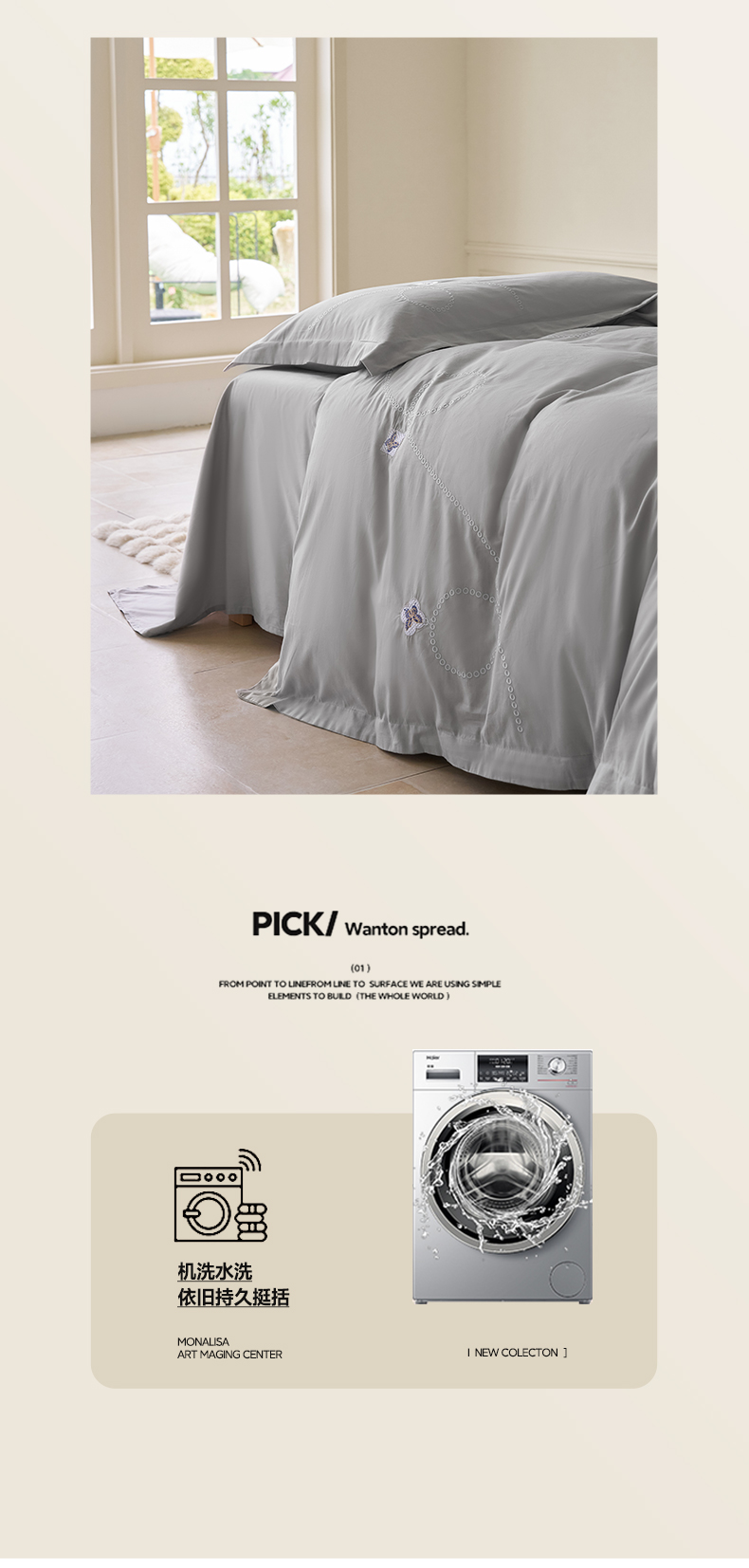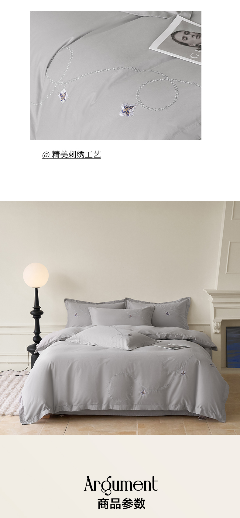 商品名称:米奈家居 2024新款长绒棉纯棉刺绣四件套-罗琳-简约风 冰川灰