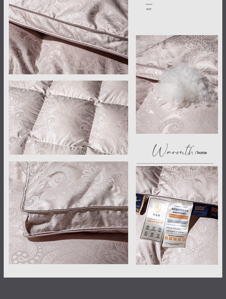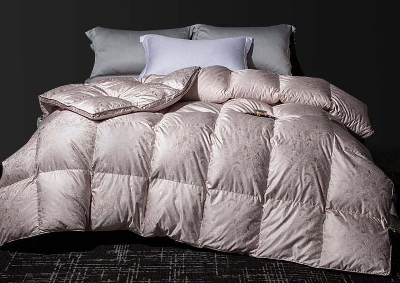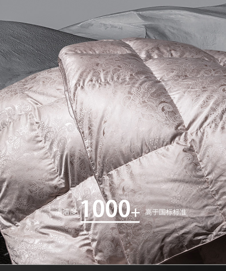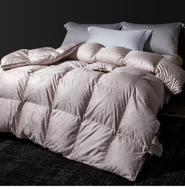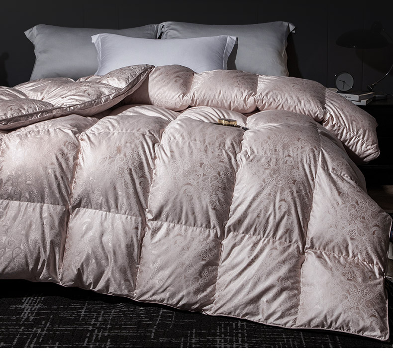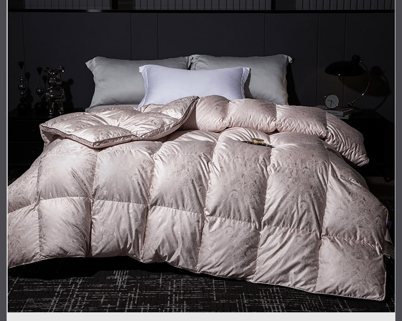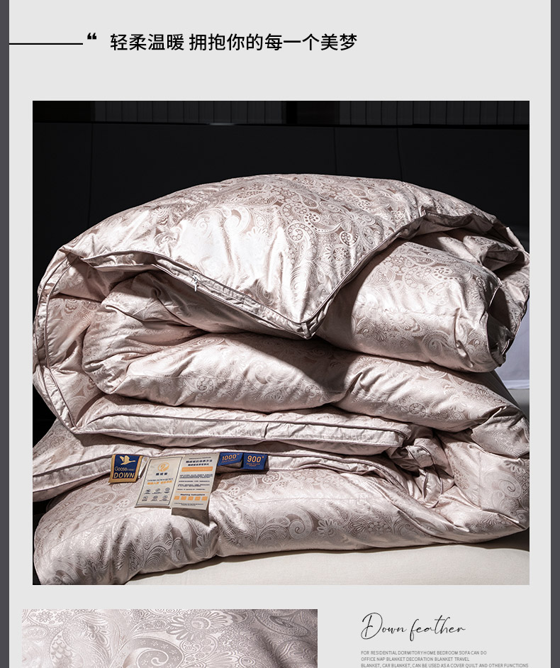 总绒研羽绒 2025魅力人生真丝大提花鹅绒被羽绒被冬被被子,灰色,藕粉,香槟色