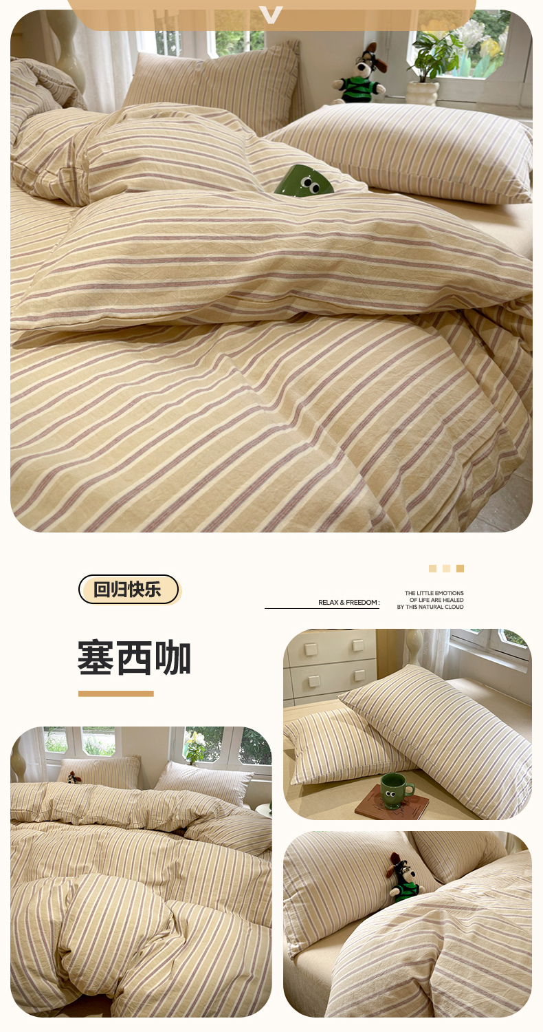 (总)欣晴家纺 2025新款软糯水洗棉条格无印宜家风混搭三件套四件套(风格1),混搭粉格,混搭灰条,混搭咖格,混搭咖条,混搭蓝格,混搭米黄,混搭米驼,混搭深灰