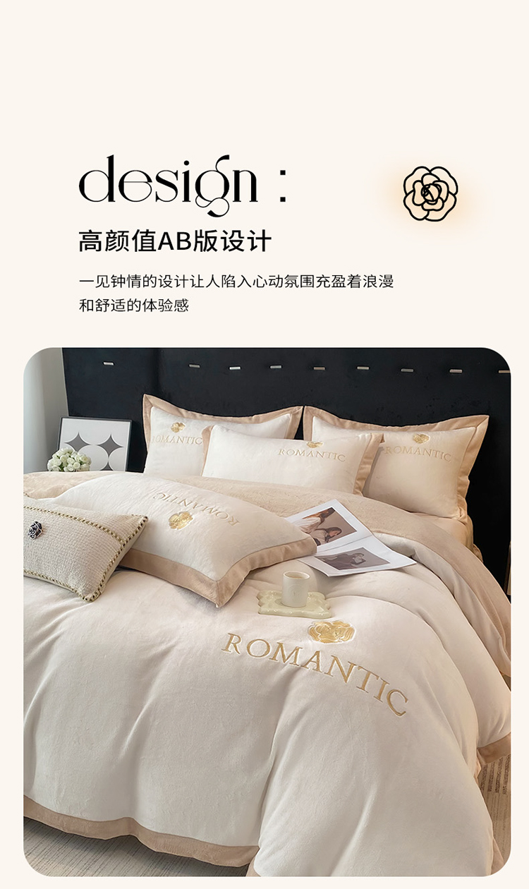 商品名称:(总)2025秋冬230g9斤全消光牛奶绒双拼绣花四件套绒宽边被套高端轻奢山茶花系列