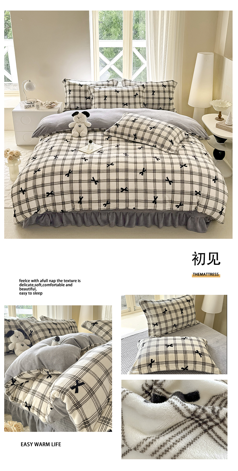 商品名称:富之航 2024新款印花牛奶绒床盖四件套 初见