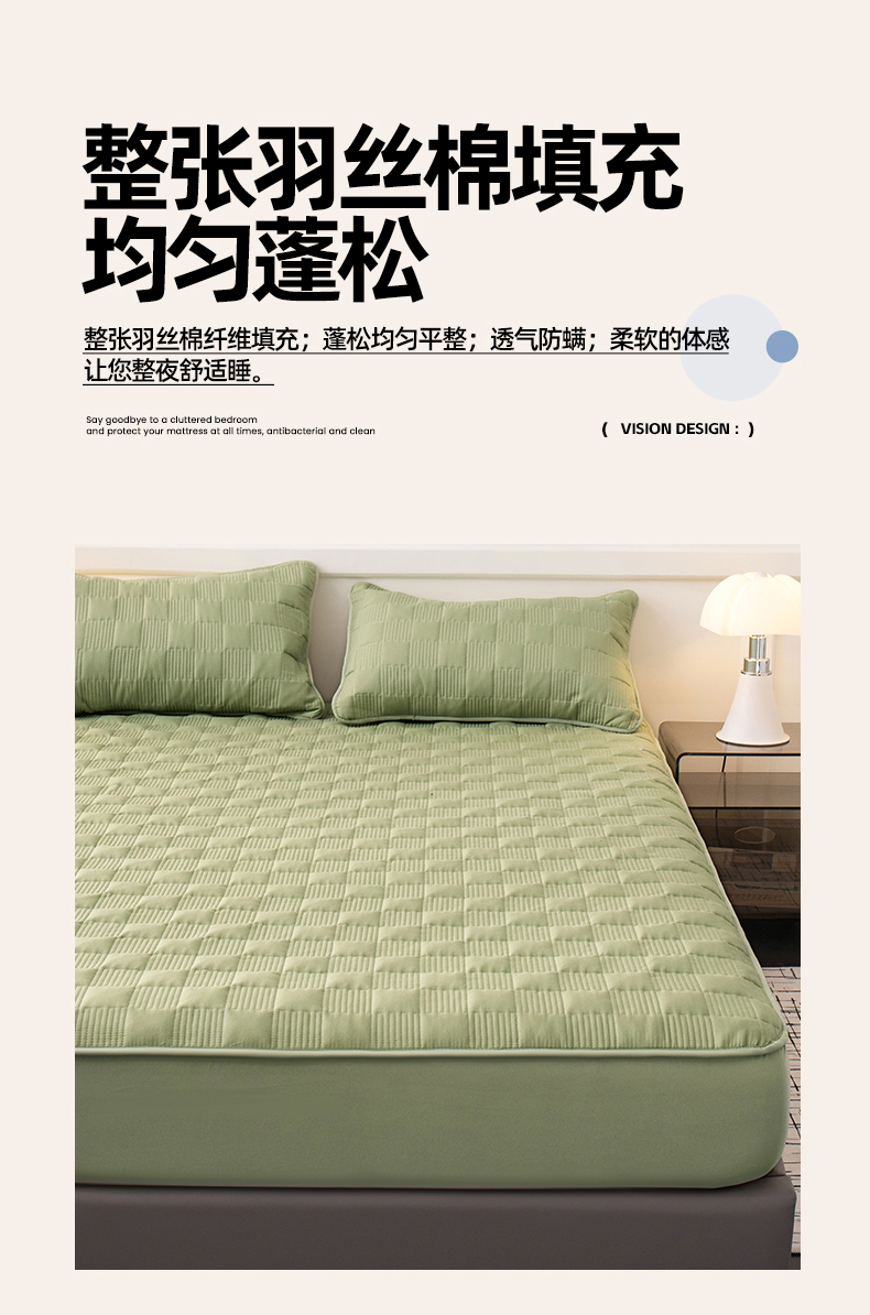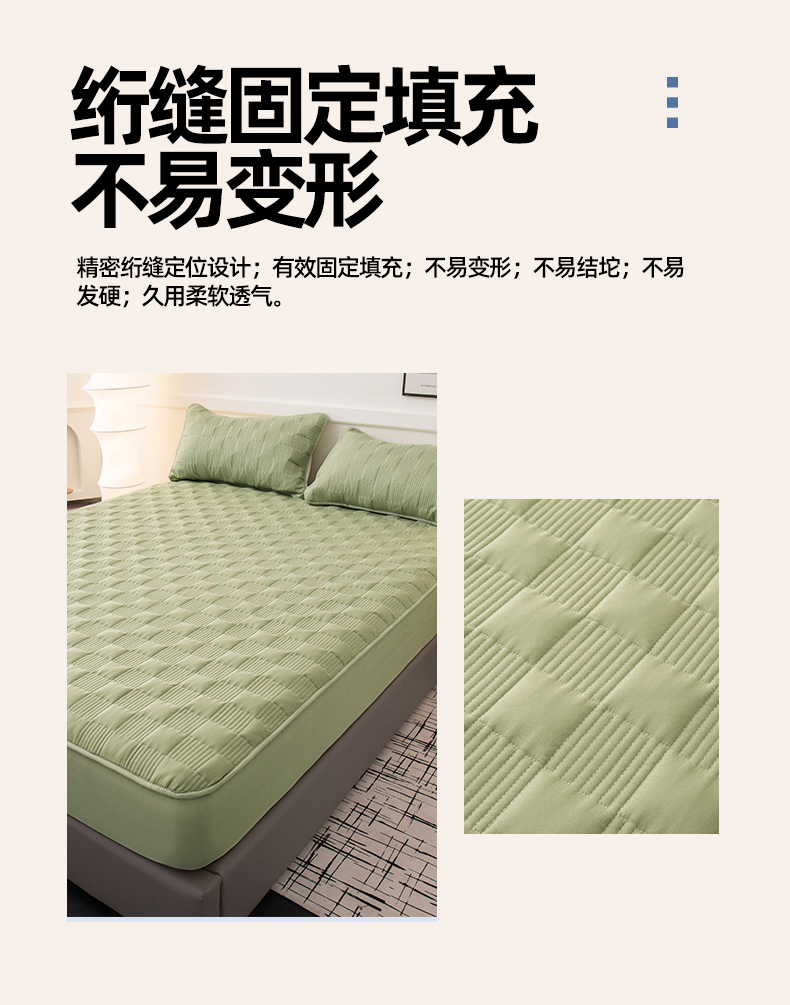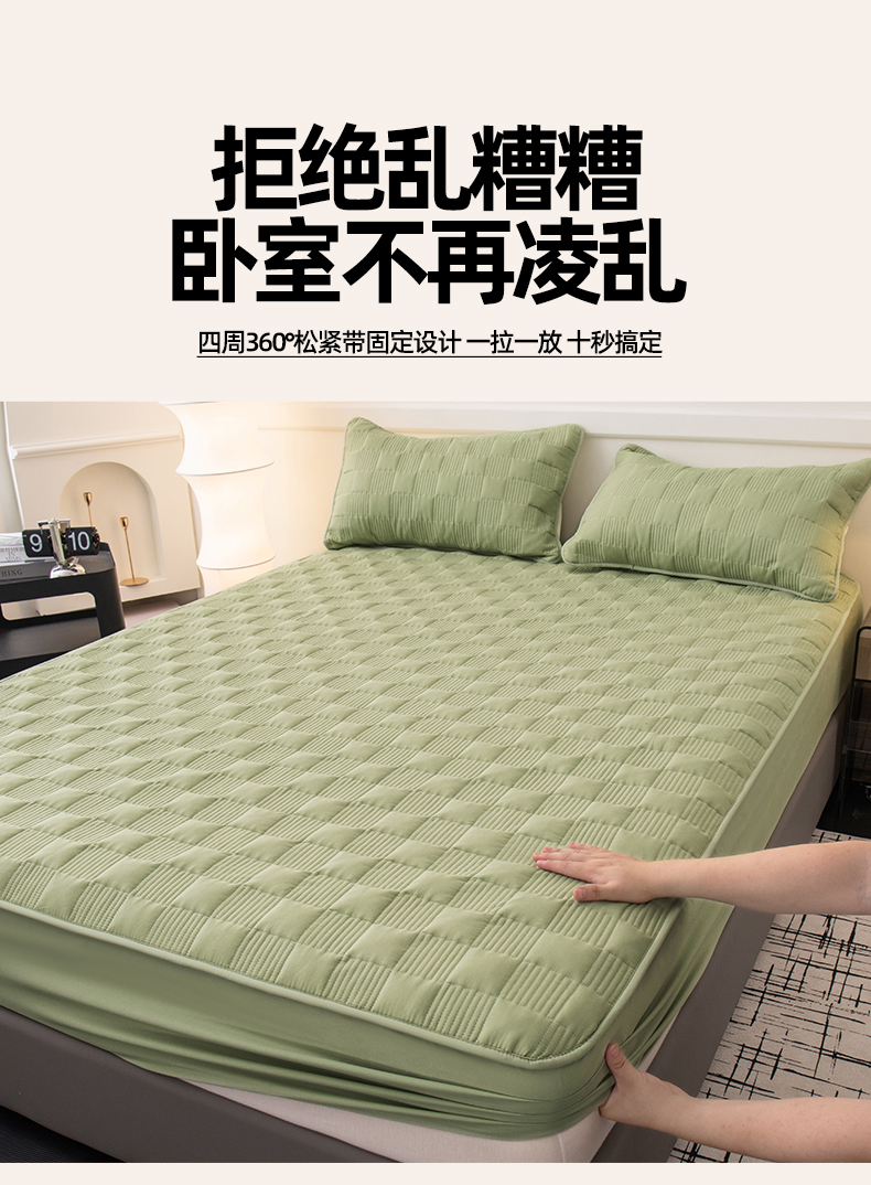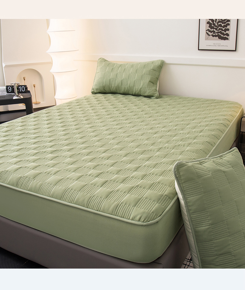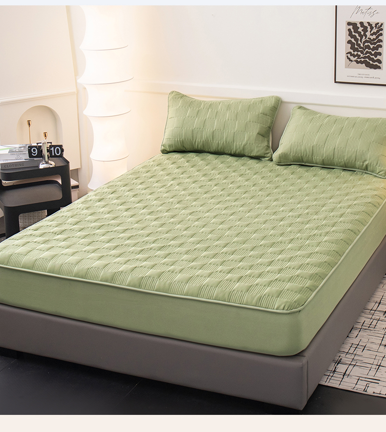 商品名称:暖季家纺 2025新款夹棉防水床笠成人款 莱律-牛油果绿