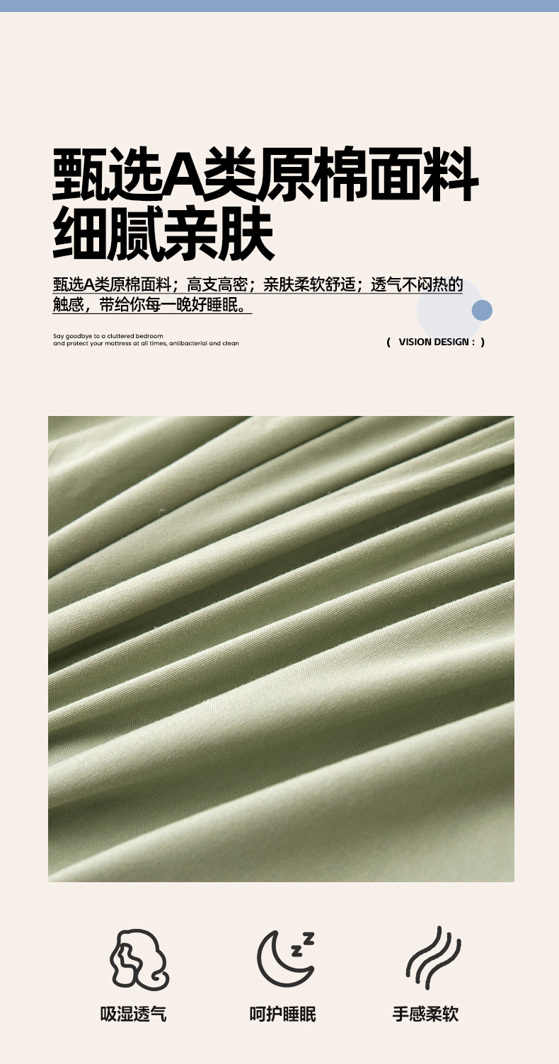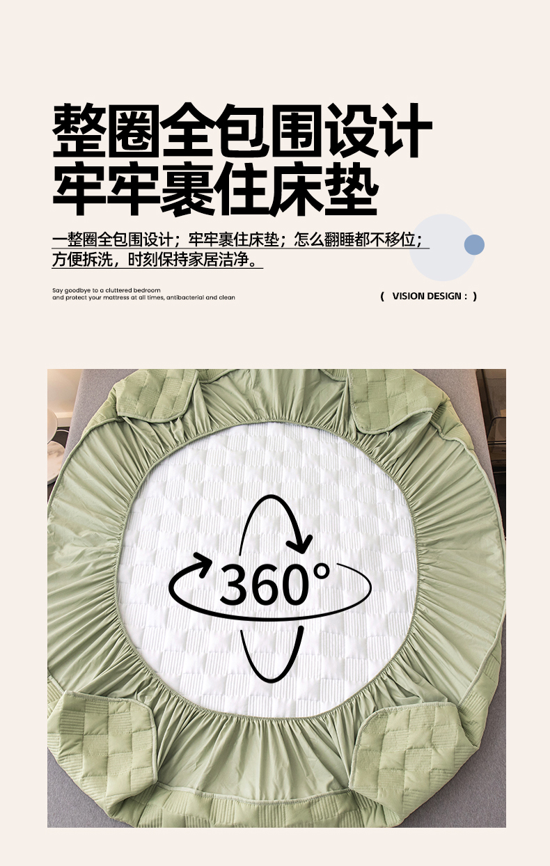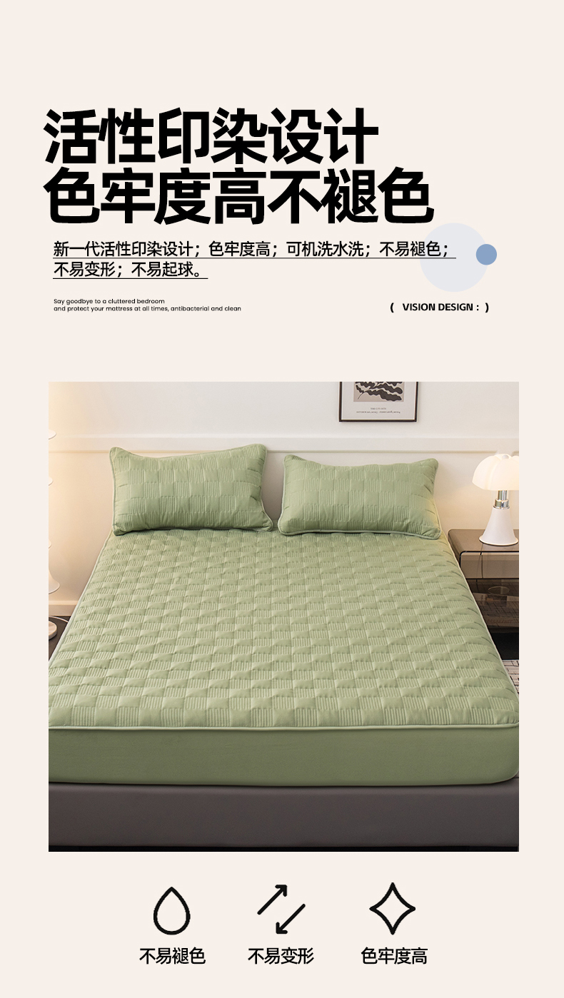 商品名称:暖季家纺 2025新款夹棉防水床笠成人款 莱律-牛油果绿
