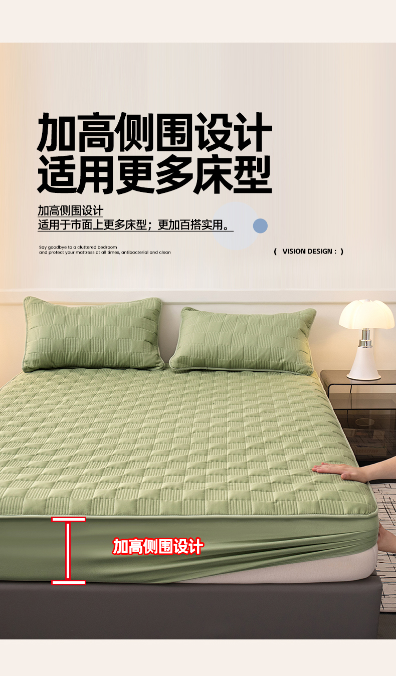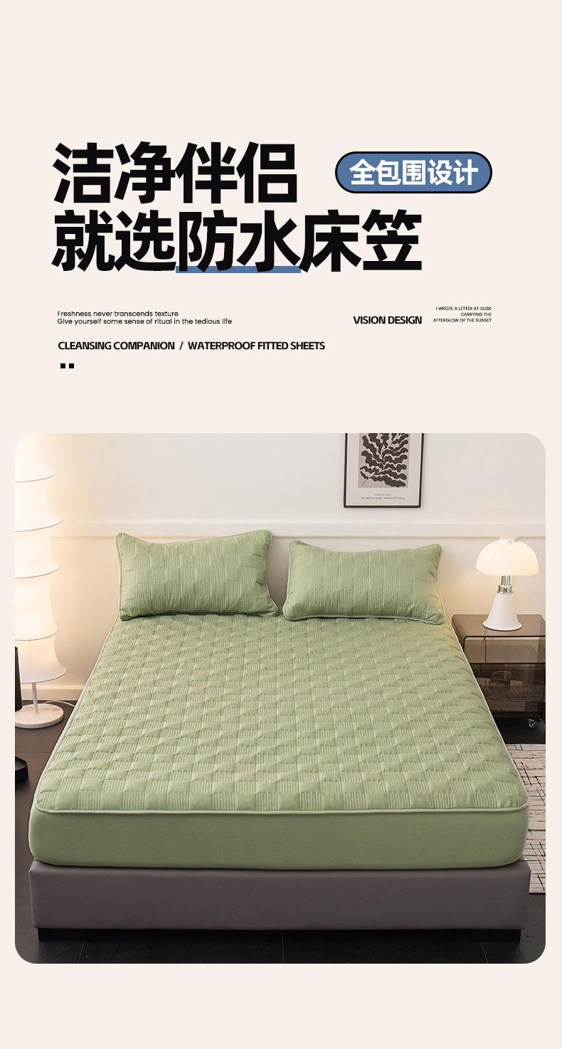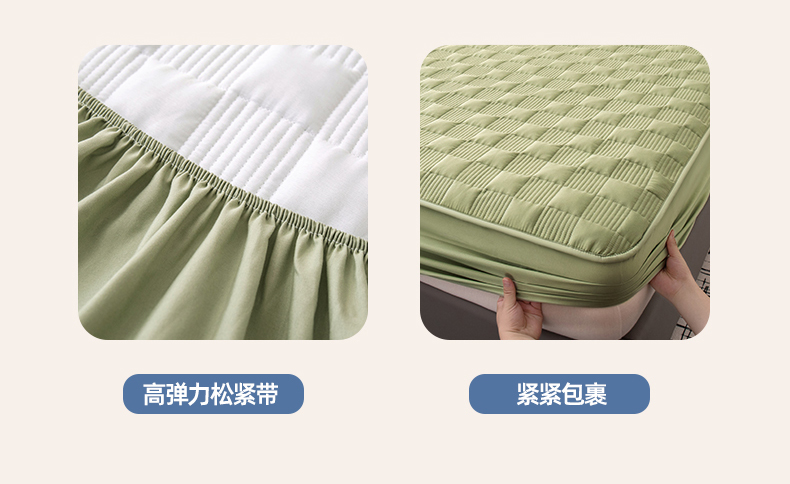 暖季家纺 2025新款夹棉防水床笠成人款 莱律-牛油果绿