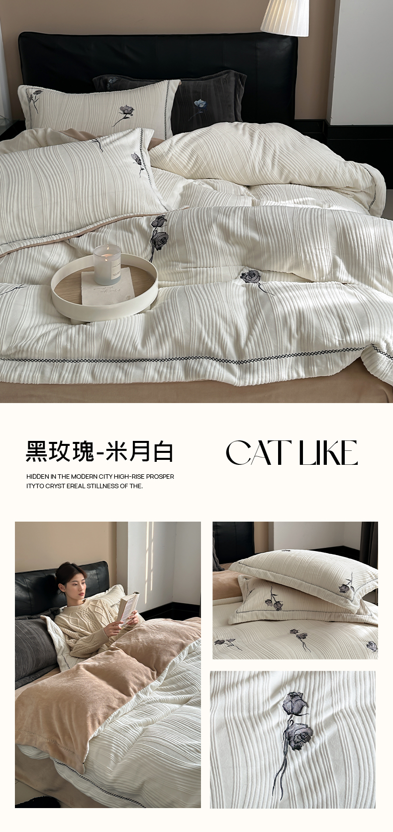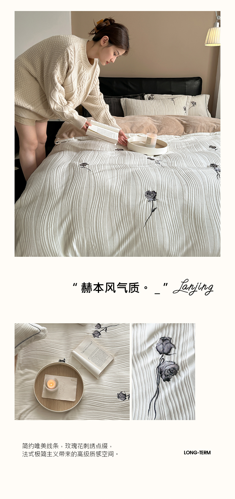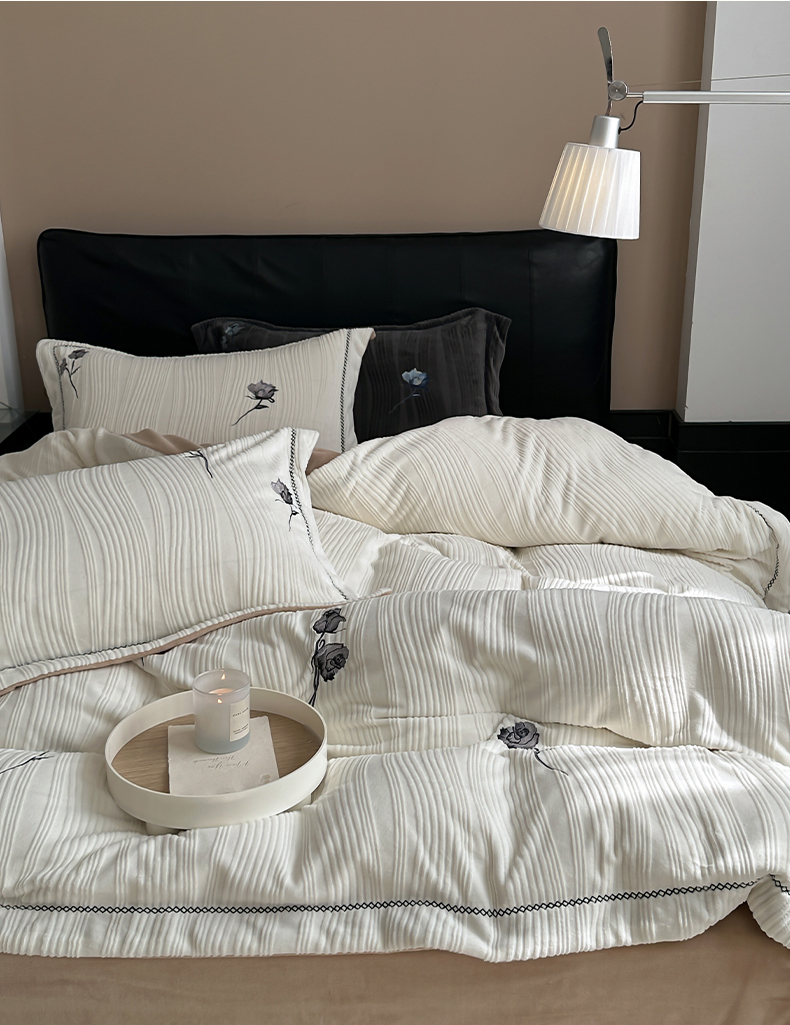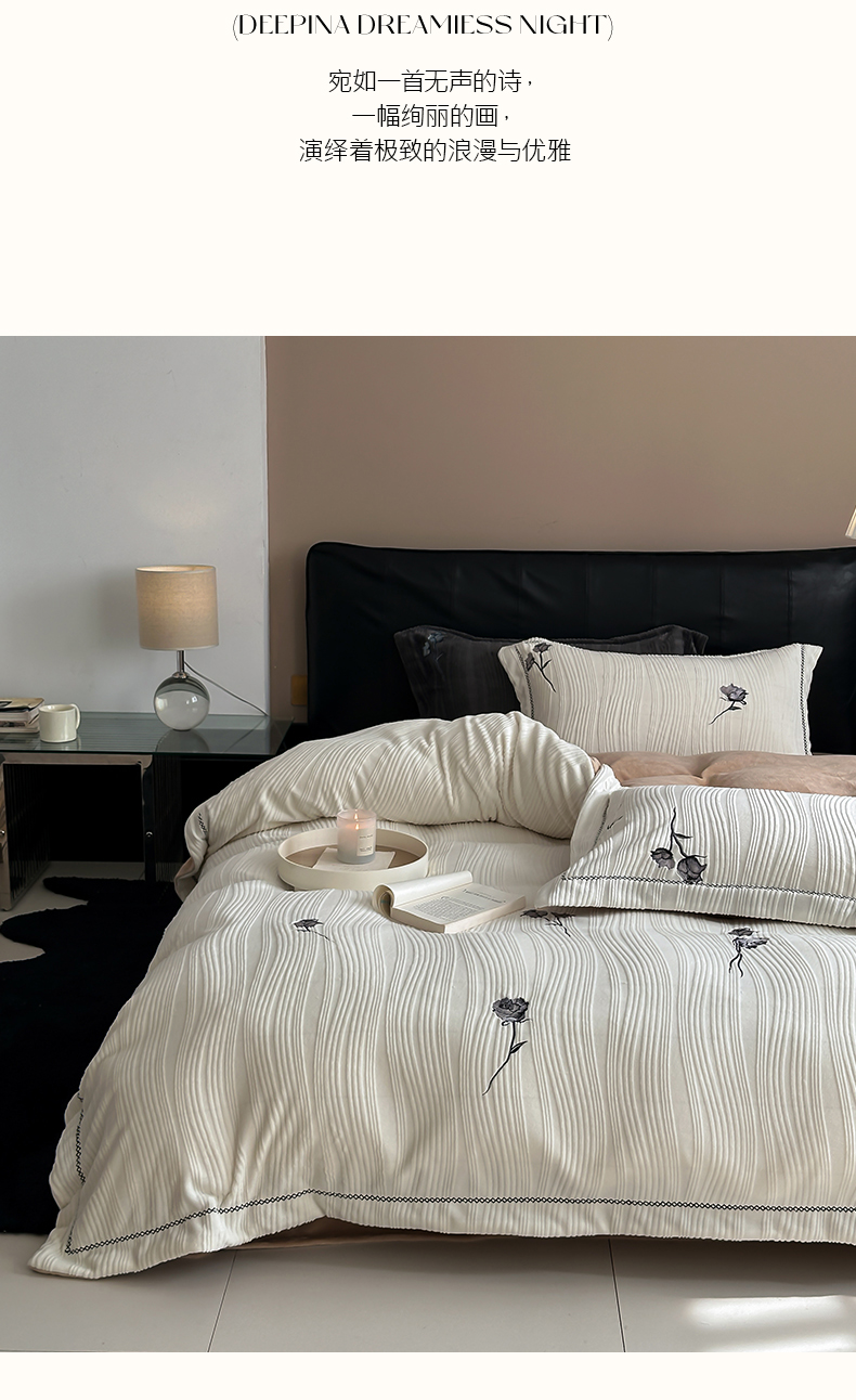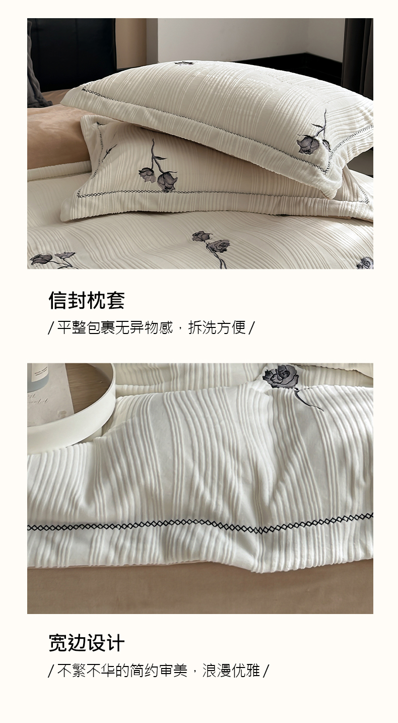商品名称:(总)安莱生活 2024新款全消光曲线绒法式玫瑰绣花四件套-第二风格(ins大图)