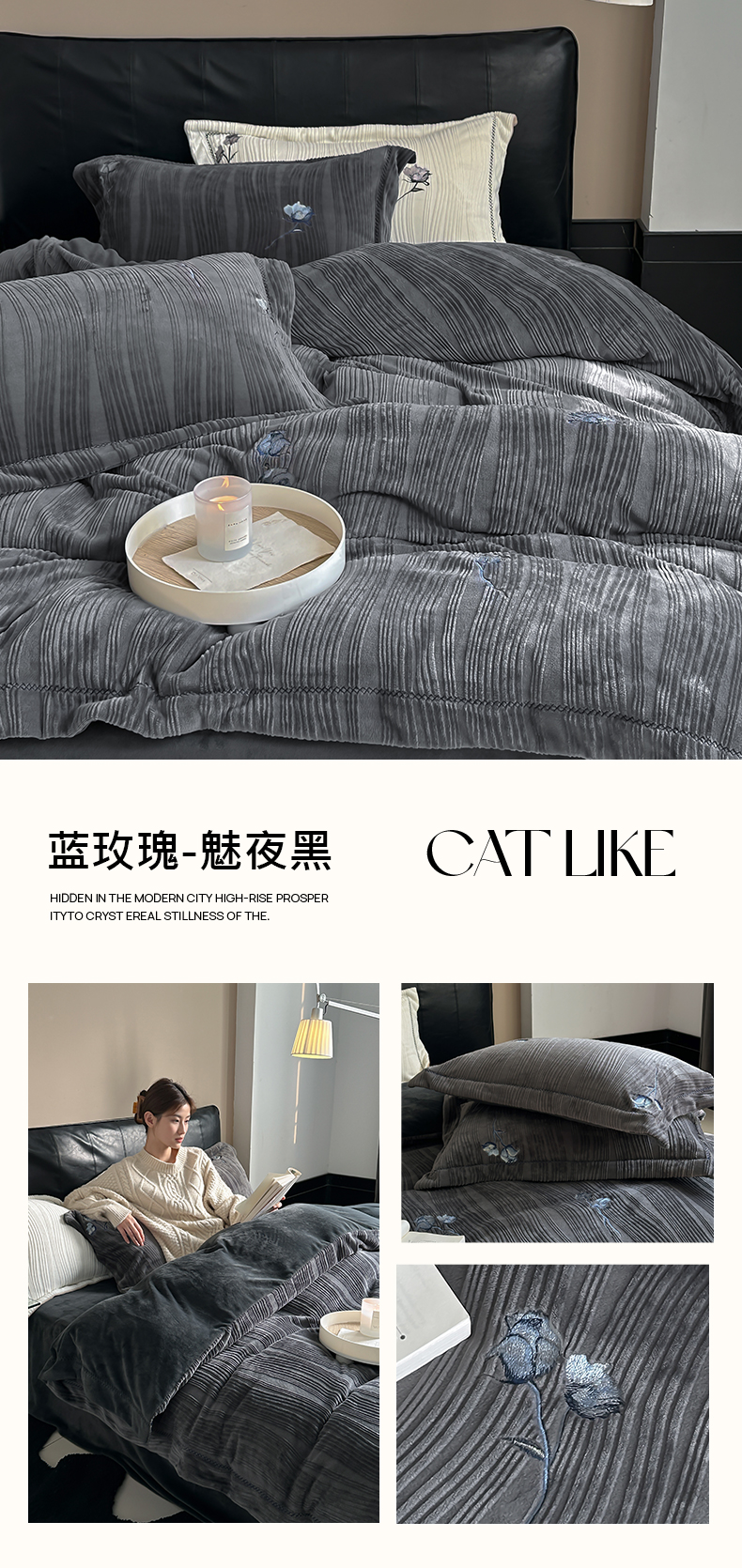 (总)安莱生活 2025新品天丝棉磨毛四件套-温煦系列,温煦-灰,温煦-紫