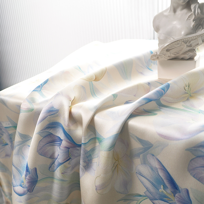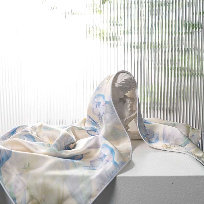 商品名称:新款真丝天丝数码印花枕套 郁香梦境蓝色