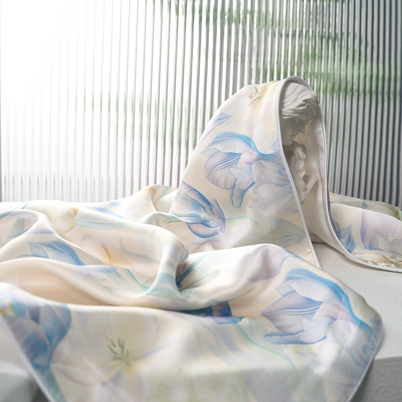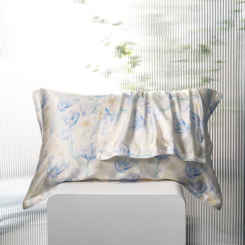 新款真丝天丝数码印花枕套 郁香梦境蓝色