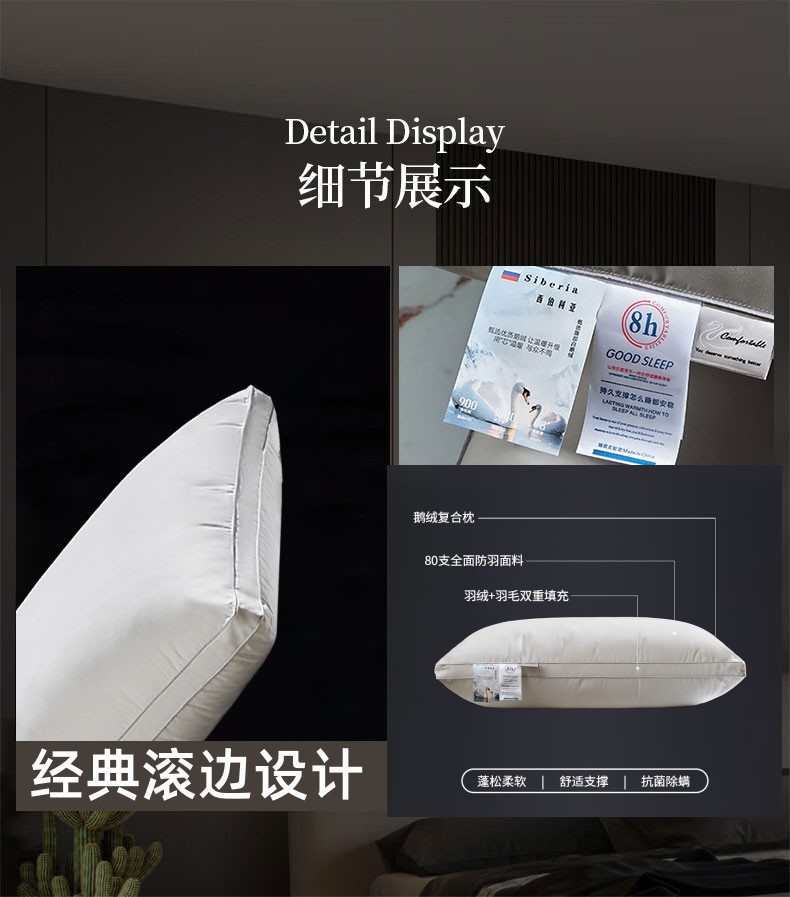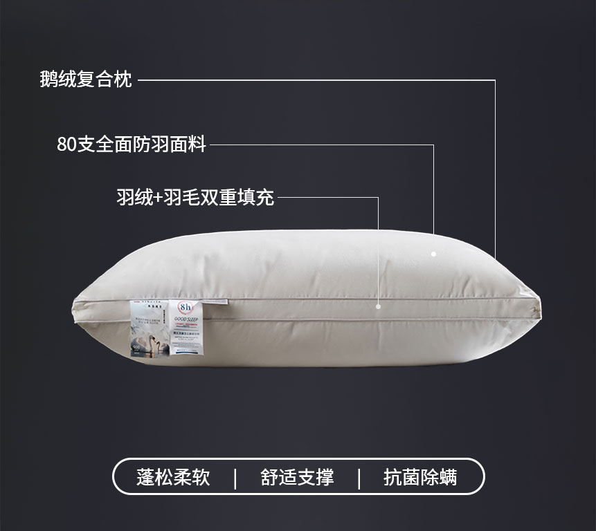(总)明羽羽绒 2024新款全棉酒店羽绒枕头枕芯白鹅绒枕芯枕头,白色低枕填充1000g,白色中低枕填充1150g,白色中高枕填充1300g,白色高枕填充1450g,灰色低枕填充1000g,灰色中低枕填充1150g,灰色中高枕填充1300g,灰色高枕填充1450g