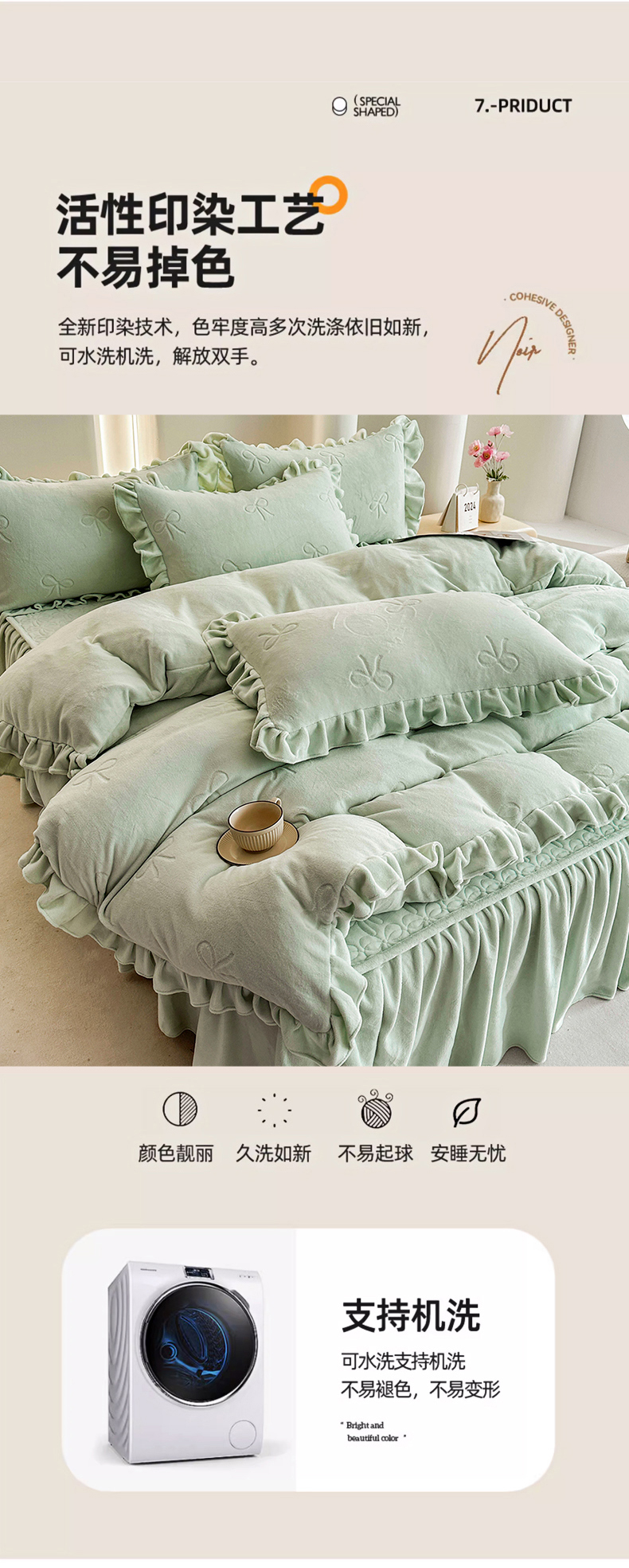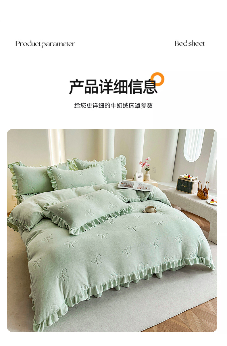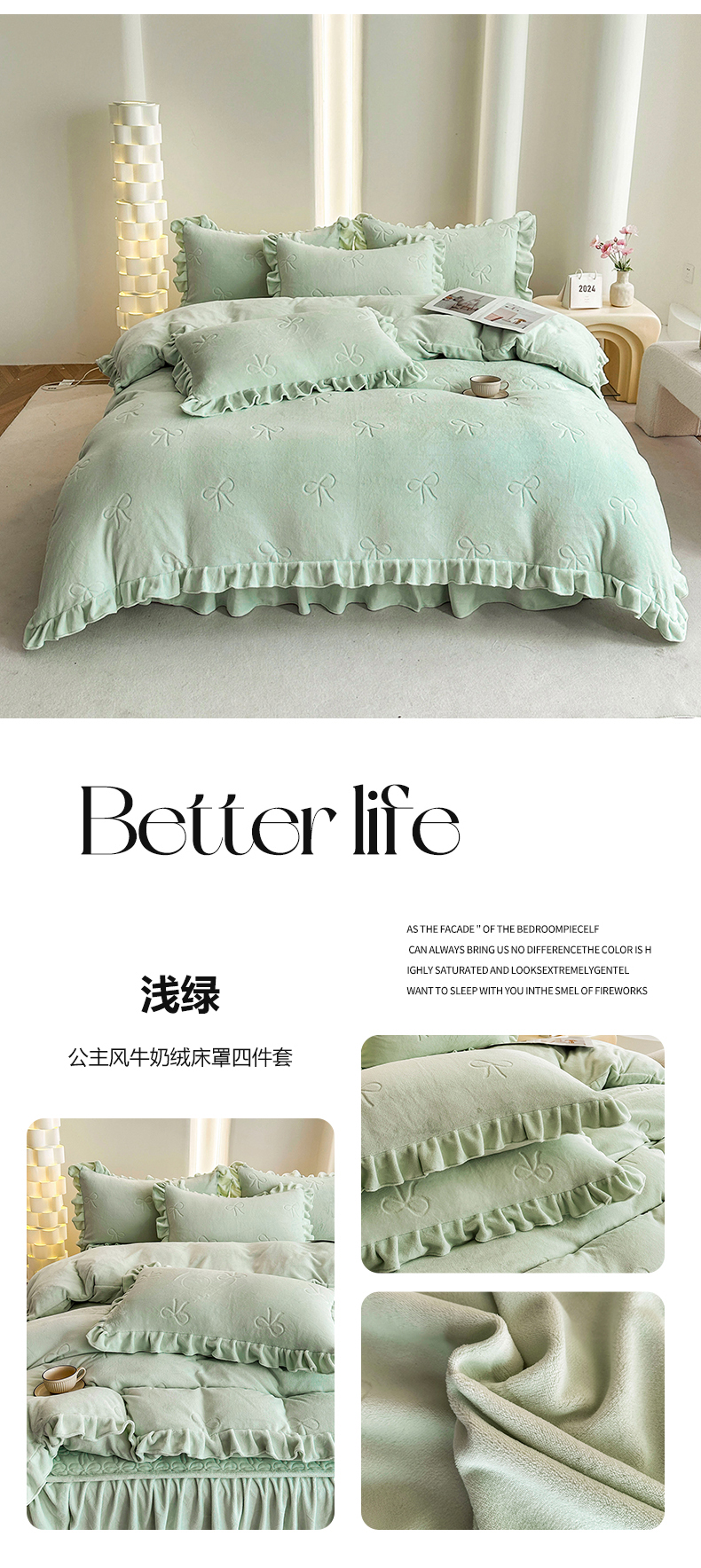 商品名称:乐嘉盈 2025新款公主风牛奶绒床罩四件套 浅绿
