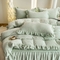 (总)乐嘉盈2025新款纯色水洗棉麻韩版花边泡泡纱床盖款四件套,粉色,紫色,绿色,蓝色