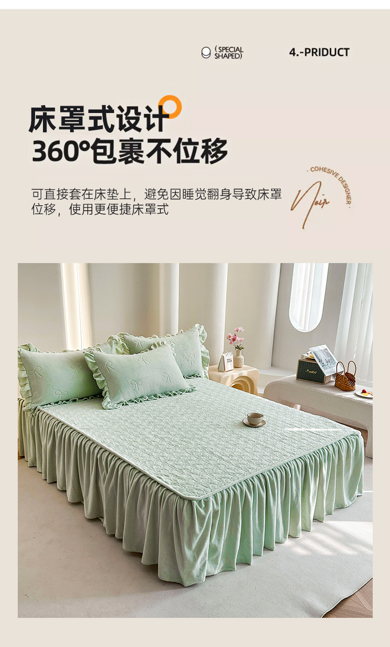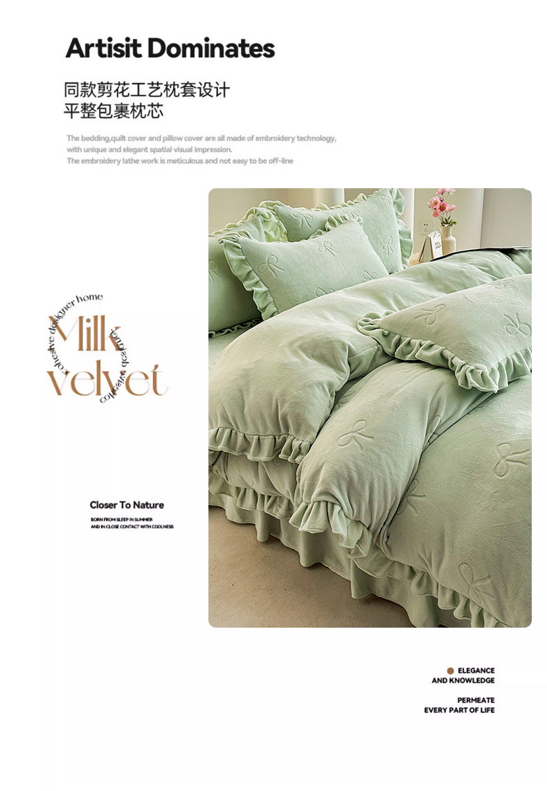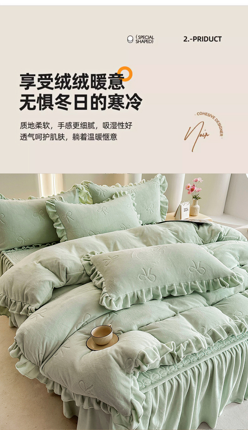 乐嘉盈 2025新款公主风牛奶绒床罩四件套 浅绿
