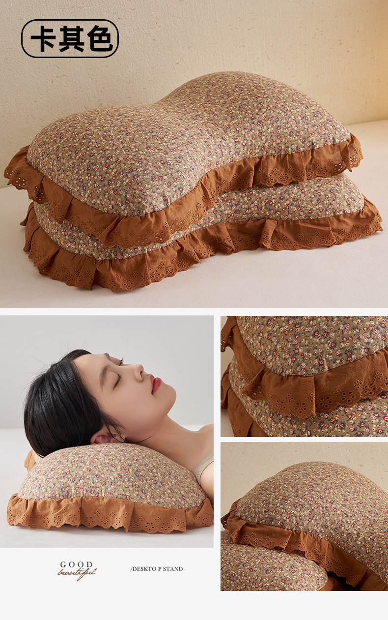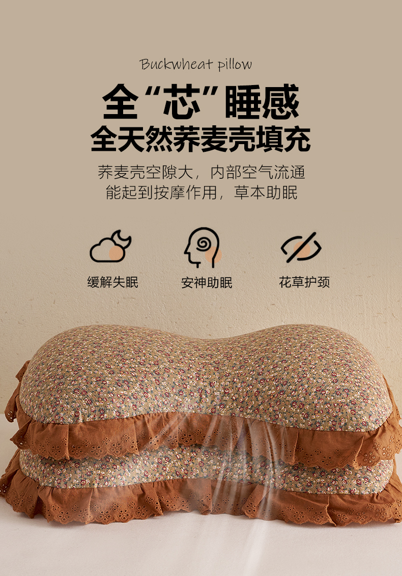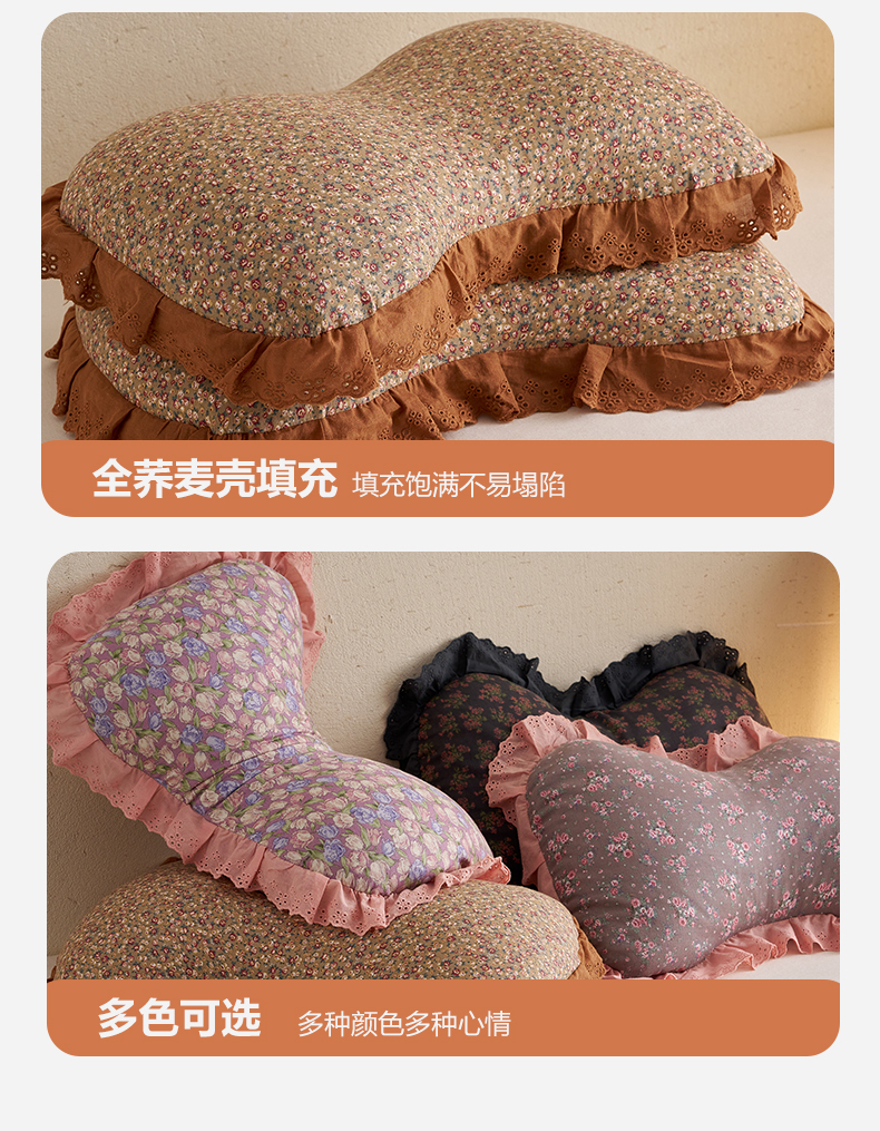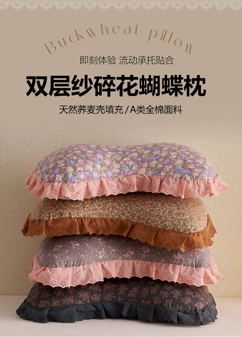 (总)乐可 2024新款A类全棉双层纱碎花蝴蝶荞麦枕 枕头枕芯