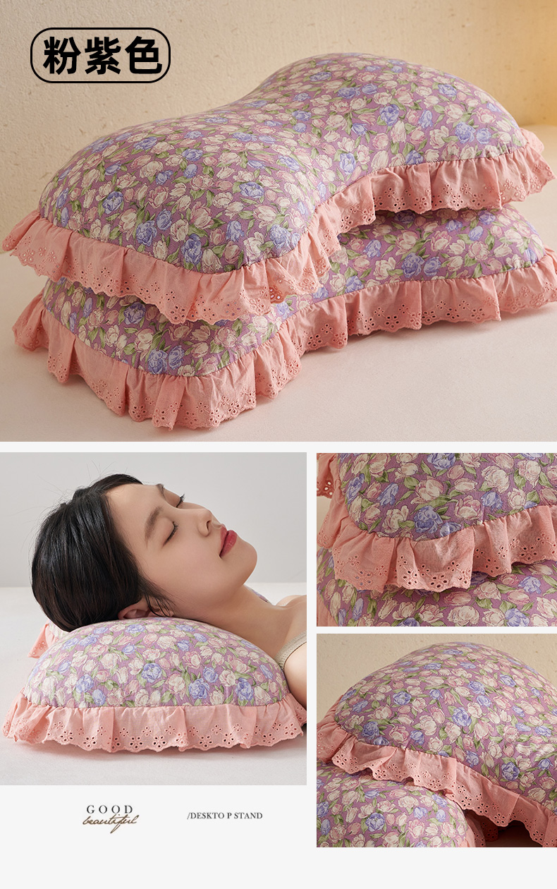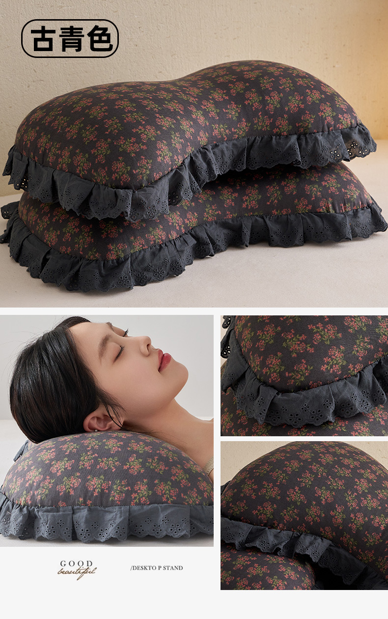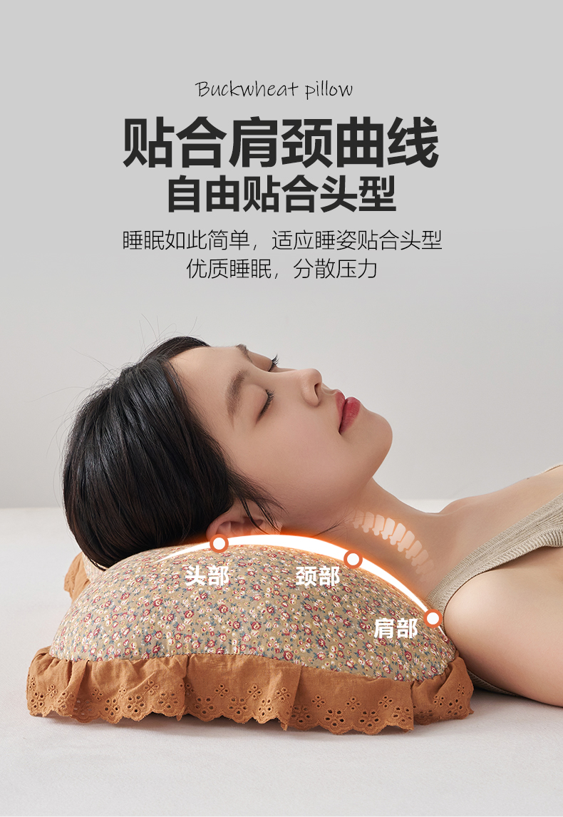 (总)乐可 2024新款A类全棉双层纱碎花蝴蝶荞麦枕 枕头枕芯