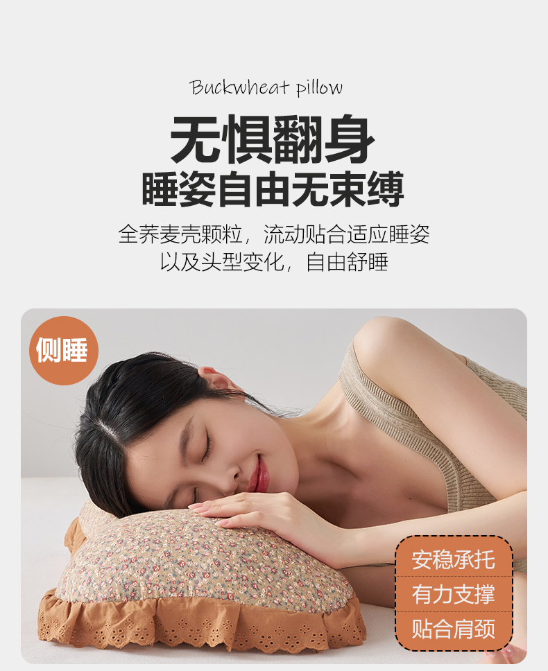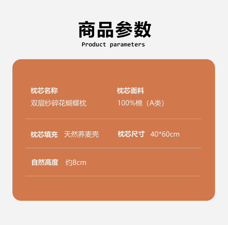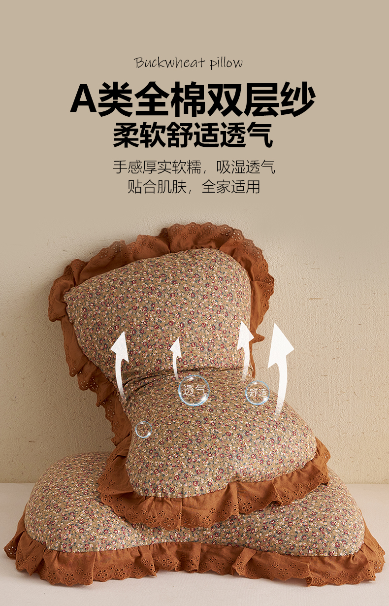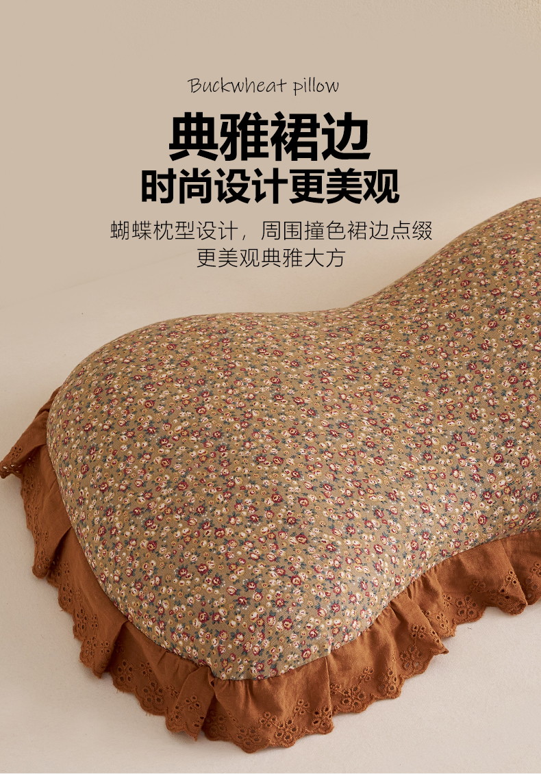 商品名称:(总)乐可 2024新款A类全棉双层纱碎花蝴蝶荞麦枕 枕头枕芯