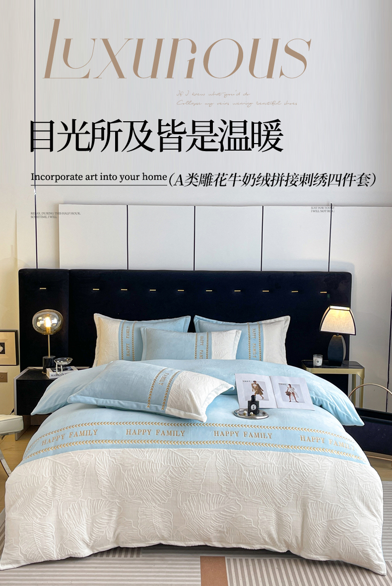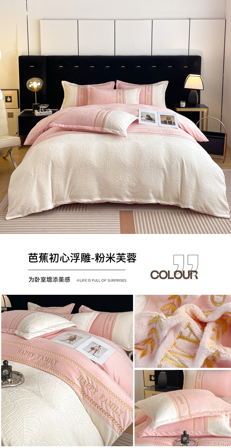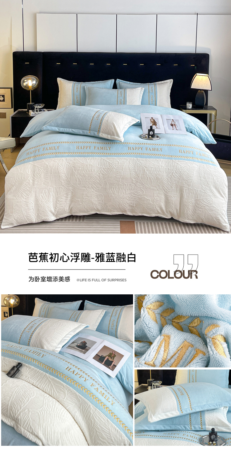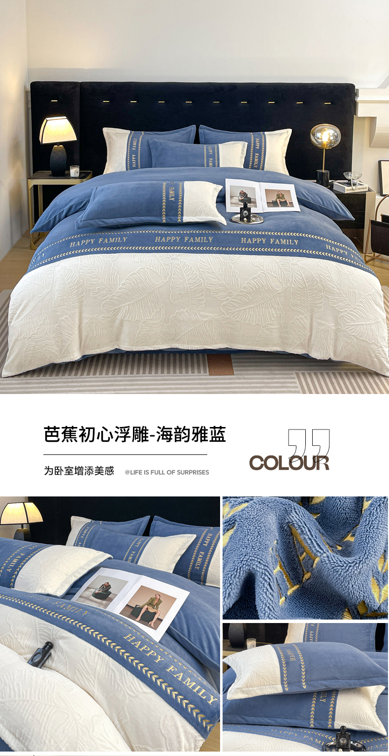 当前位置: 91家纺网 > 商品网购 > 床品套件 > 四件套 > 牛奶绒四件套 > 恒尚居 2024新款母婴级牛奶绒四件套--芭蕉初心浮雕系列 芭蕉初心浮雕--雅蓝融白