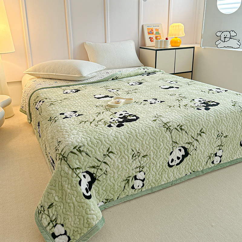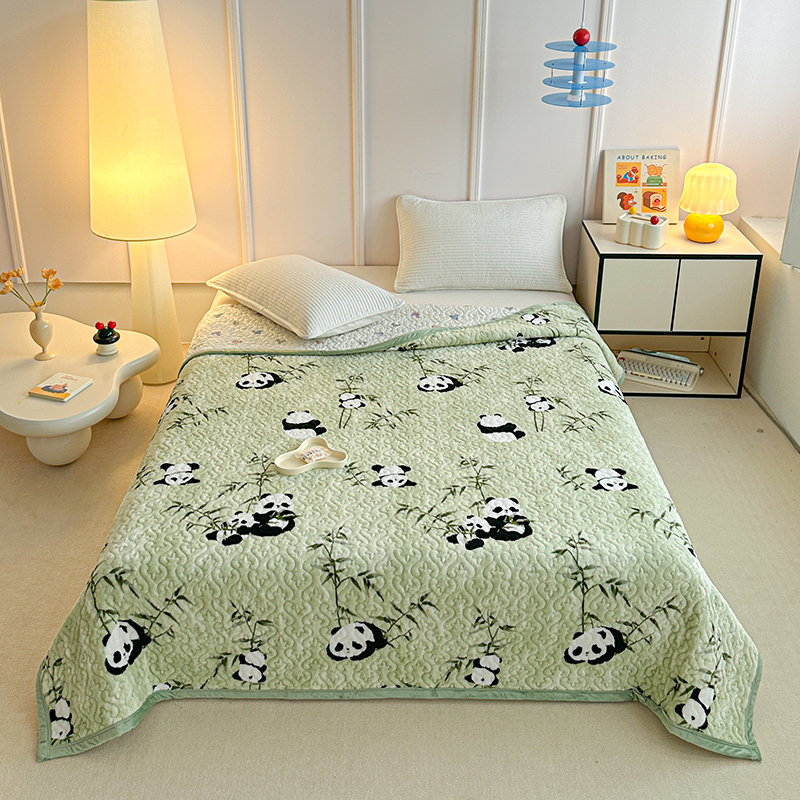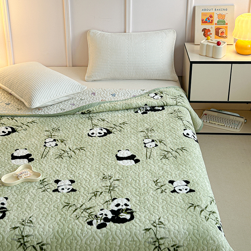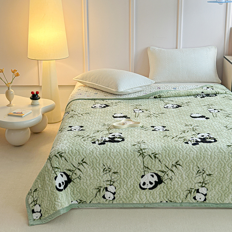 2025新款高克重牛奶绒印花单床盖 熊猫