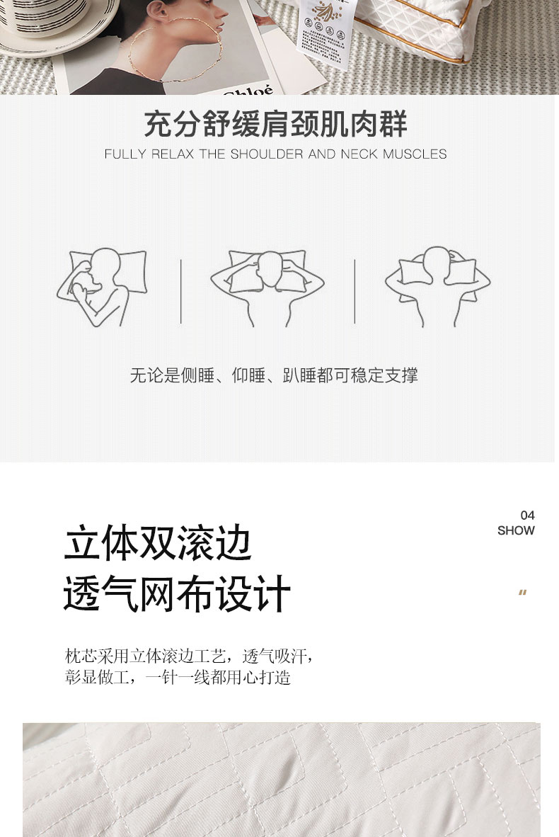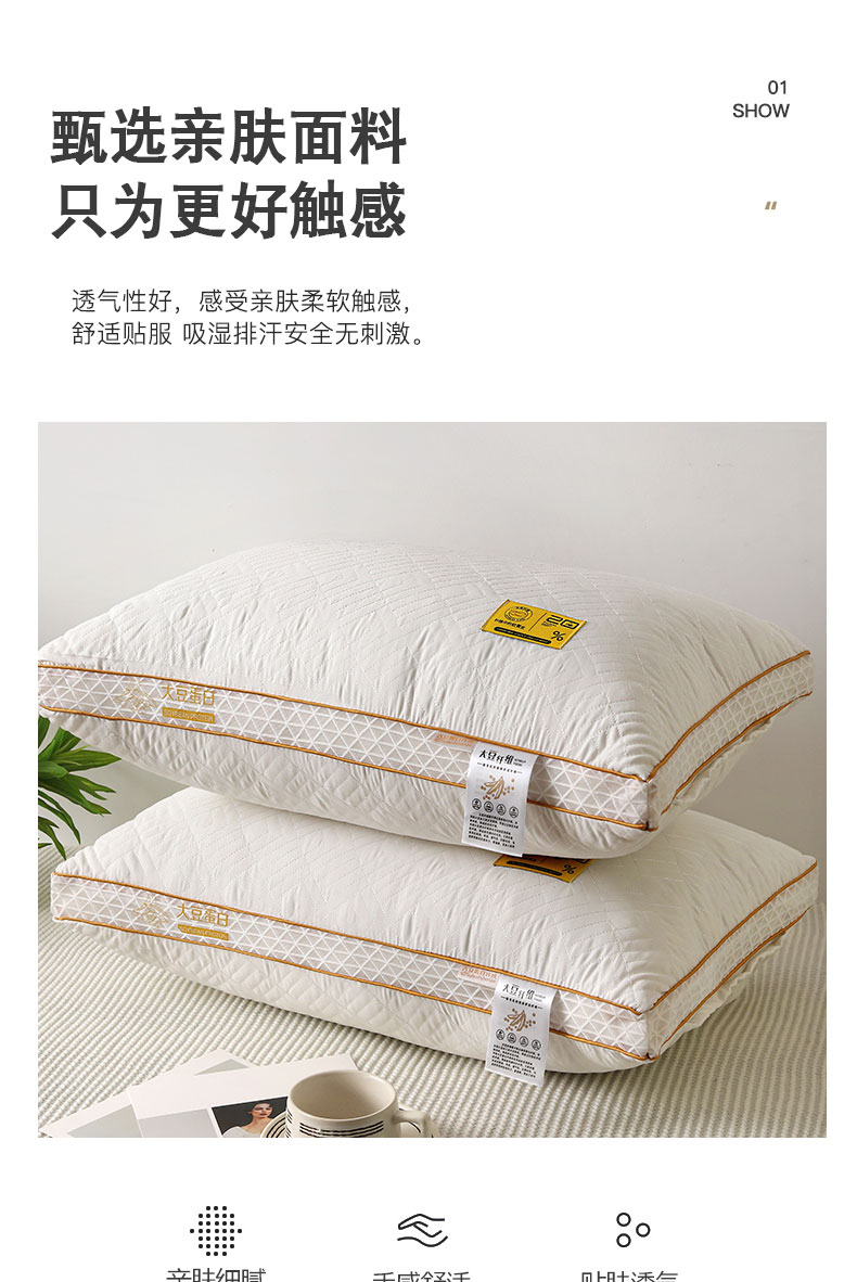商品名称:(总)万聚凯枕芯 2024新款大豆蛋白纤维枕立体网边枕头护颈椎助睡眠酒店枕芯/只