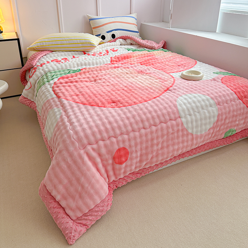 商品名称:源舜家纺 2025新款兔绒印花泡泡冬被豆豆被被子被芯 水蜜桃
