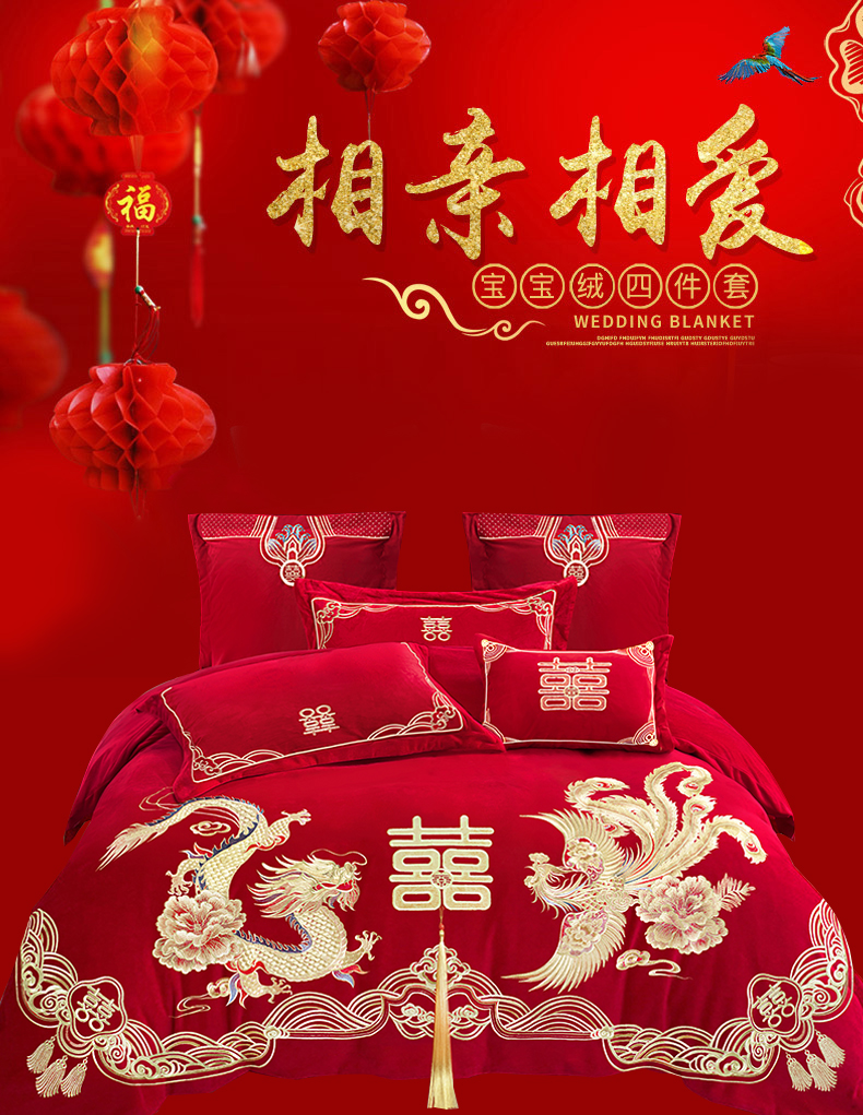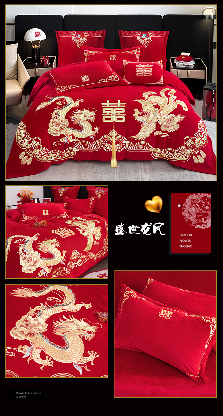 当前位置: 91家纺网 > 商品网购 > 床品套件 > 四件套 > 婚庆四件套 > 2025年新款宝宝绒牛奶绒刺绣套件婚庆四件套 盛世龙凤