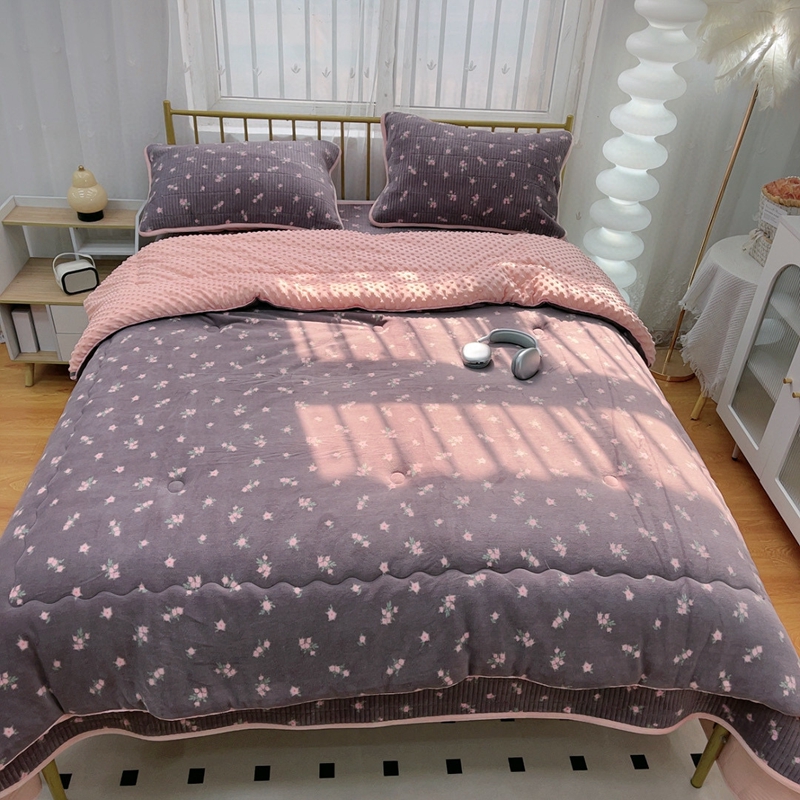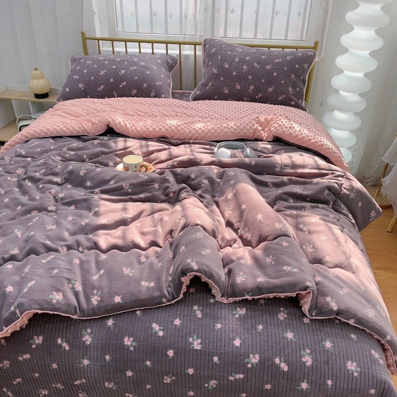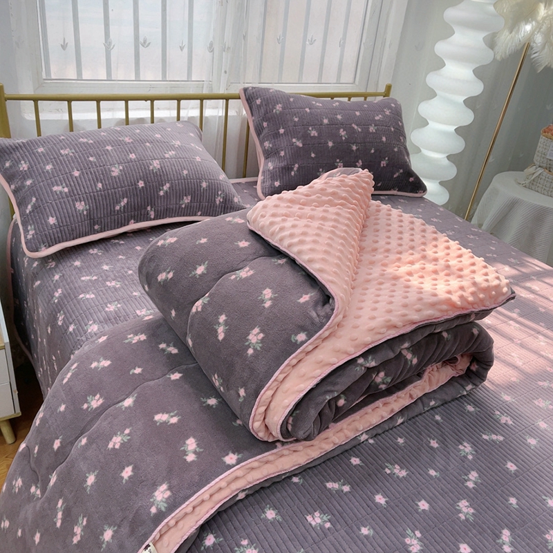 暖居 2024新款牛奶绒豆豆被床盖四件套 紫花香草