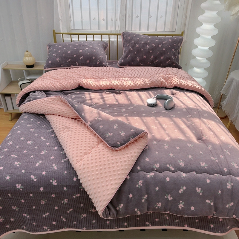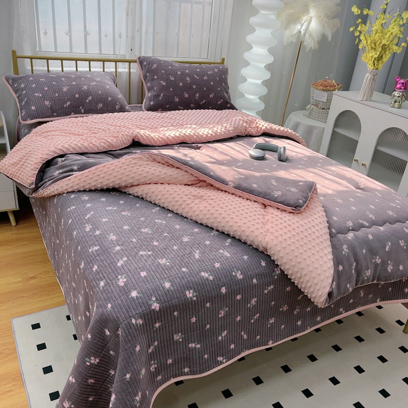 (总)暖居 2026新款一面纯棉一面绒床盖+同款纯棉豆豆被跑量,兰意,冰淇淋,绿芽,奶油波罗,森系绿野,疏影,樱桃密果,黑巧豹纹,小花,星月