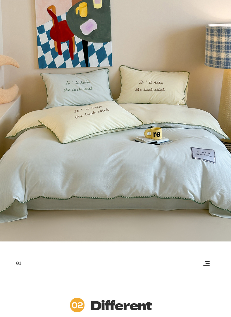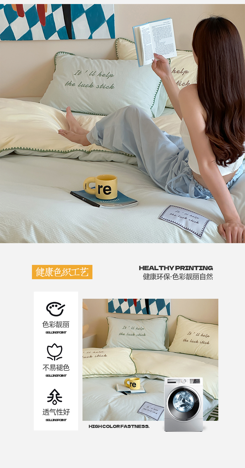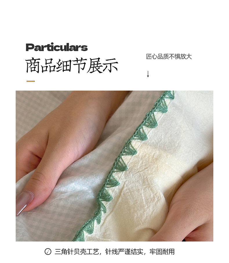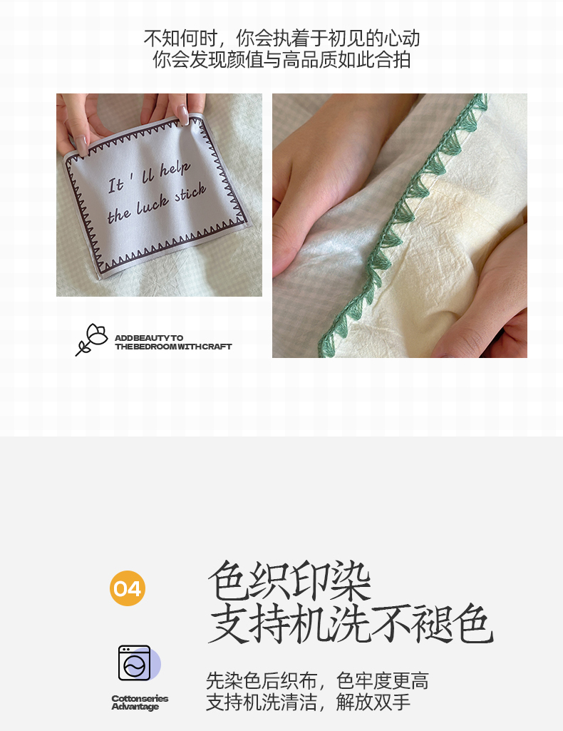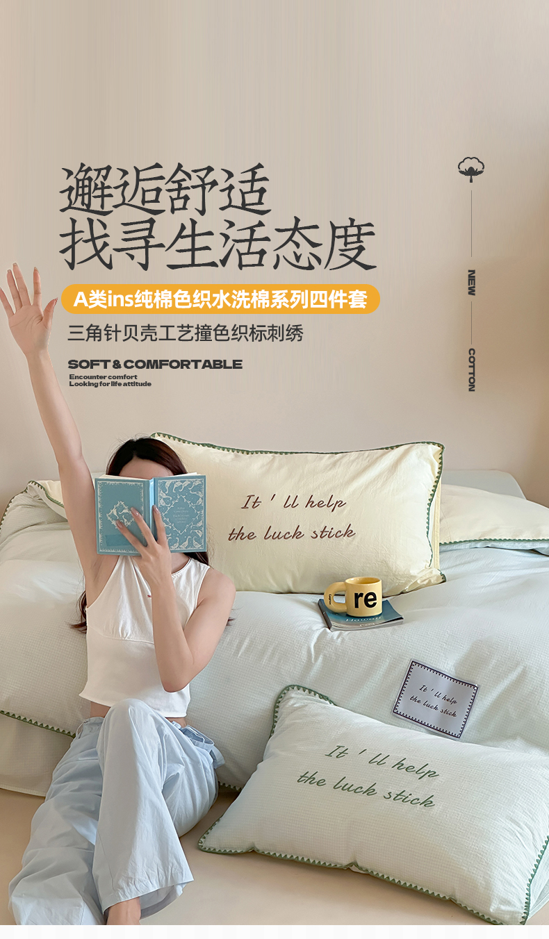 当前位置: 91家纺网 > 商品网购 > 床品套件 > 四件套 > 水洗棉四件套 > 桃子家居 2025新款A类ins纯棉色织水洗棉三角针贝壳工艺撞色织标刺绣系列四件套 棉三角针-S清新柠檬