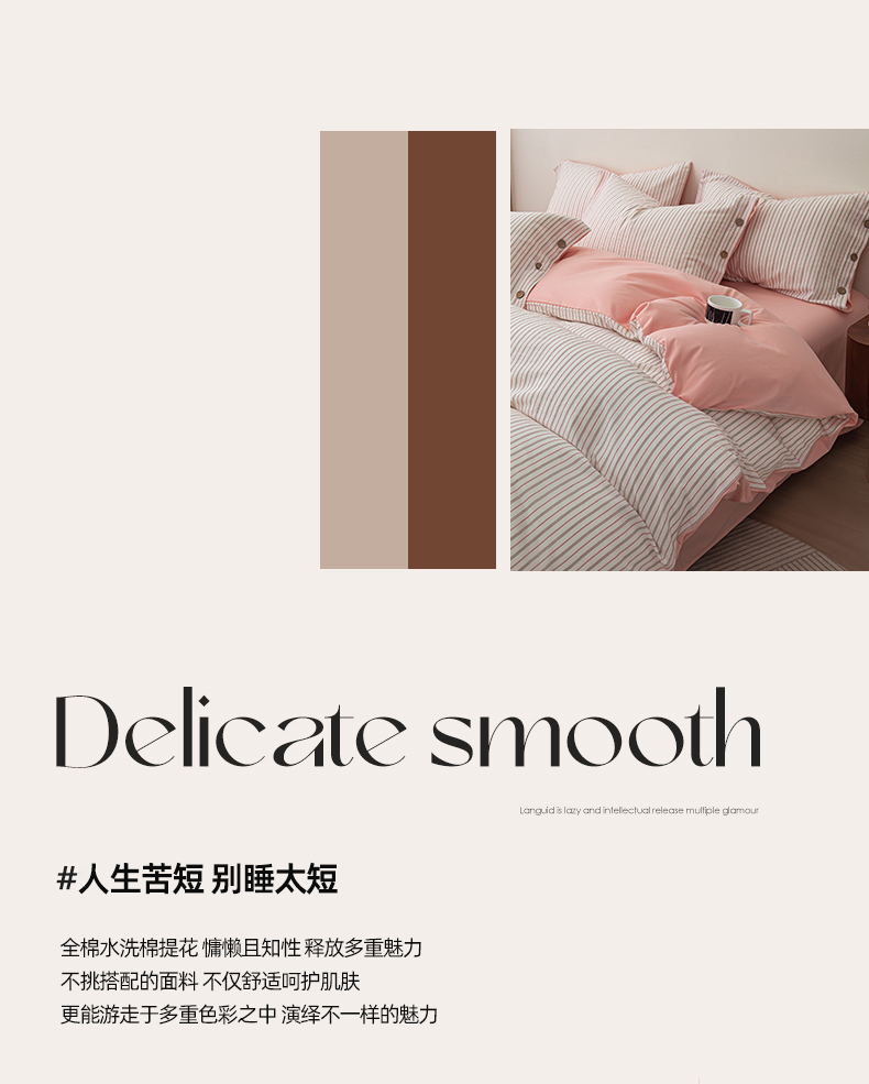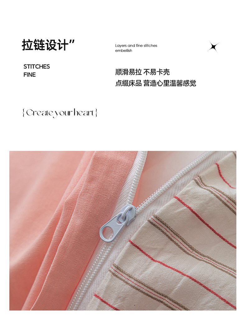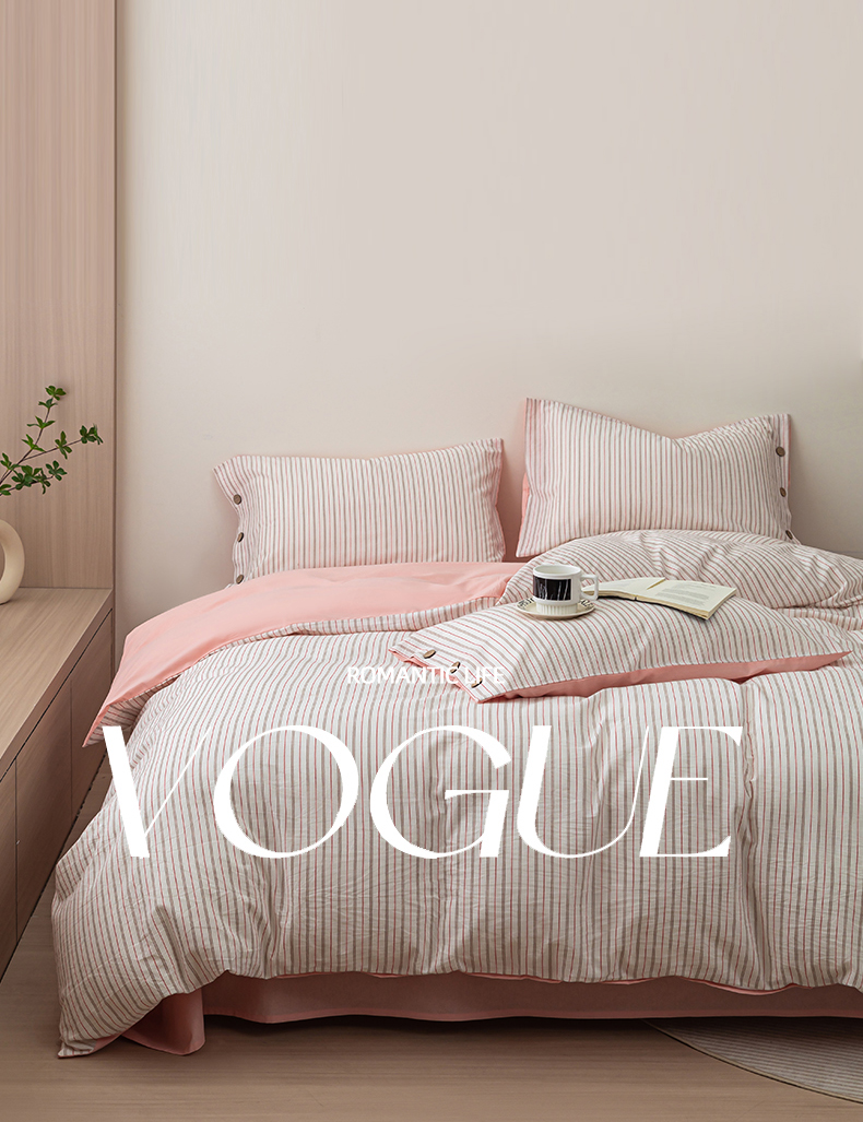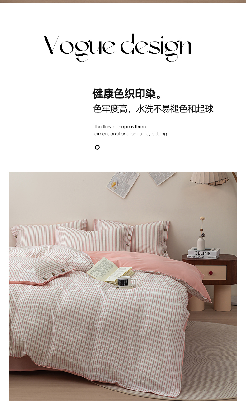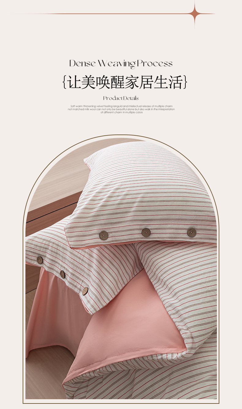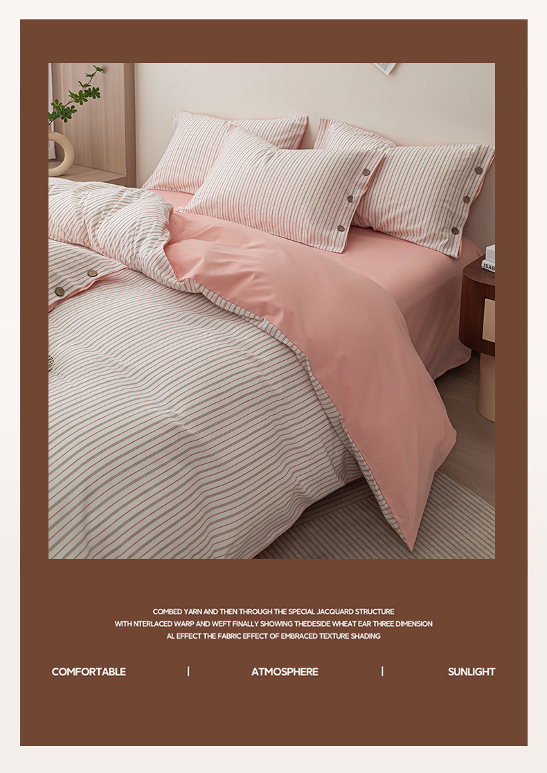 简宜家居(朝初家纺) 2025新款11月色织小提花简约条纹水洗棉纽扣四件套 粉灰条